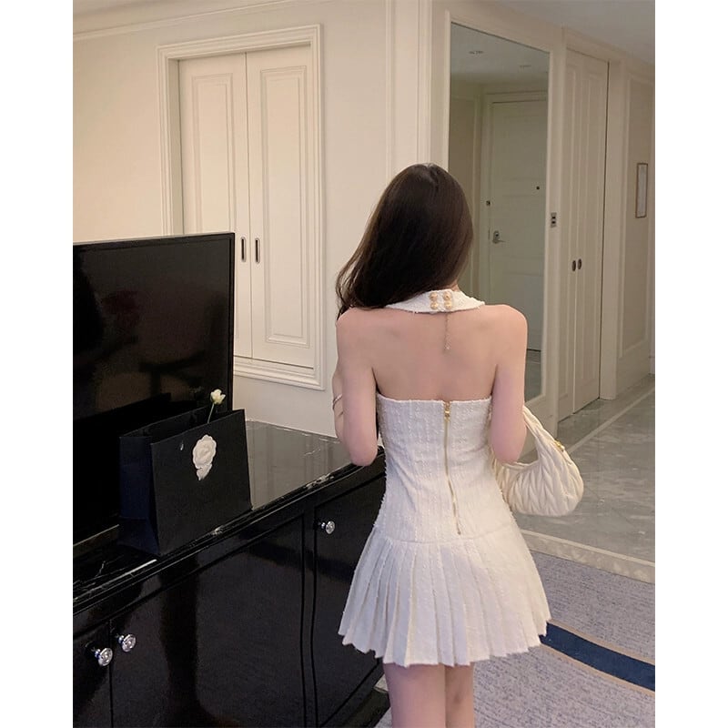 Xiaoxiangfeng ホルターネックサスペンダードレス女性の夏のウエストを締める気質プリーツスカートハイエンドスクエアネック A ラインスカート サマー 夏物 Aライン スクウェア bstraw30732937336 | beaute25