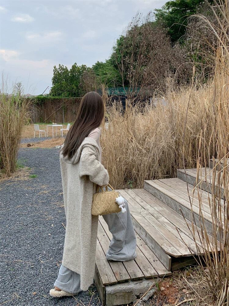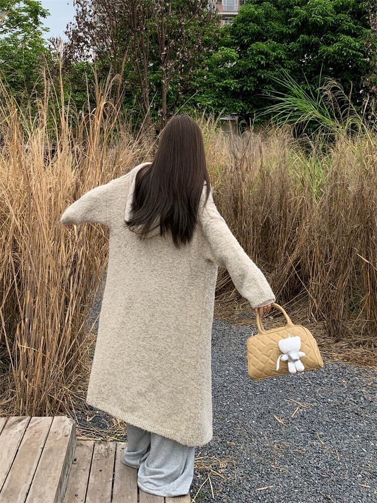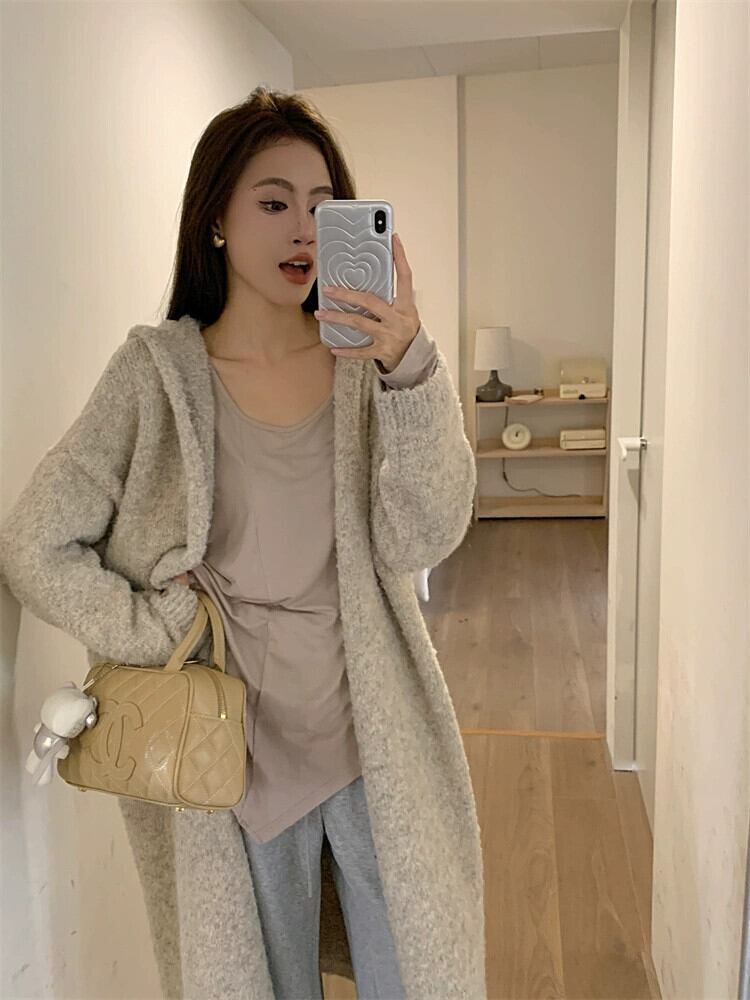 ルーズで怠惰なフード付きニットセーターカーディガン女性の秋のアウターウェアミッドレングス長袖アウターコートコートトップ ロング オータム 秋物 bstraw22329822524 | beaute25