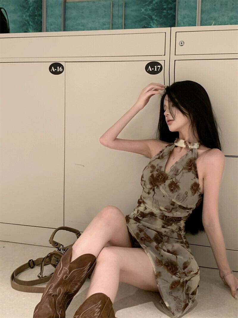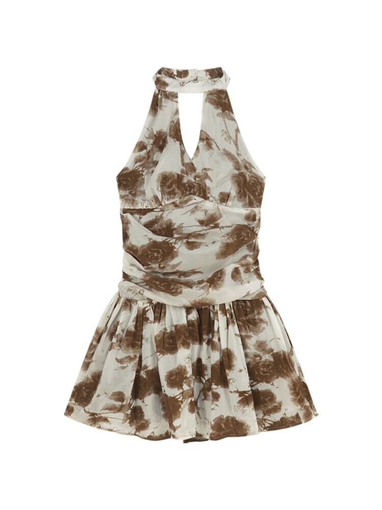 レトロローズホルターネックドレス女性の夏の v ネック a ラインスカート小柄な純粋な欲望メッシュ甘いバックレススカート 大人ガーリー スウィート キュート カジュアル サマー 夏物 Vネック Aライン ピュア bstraw1636853818 | beaute25