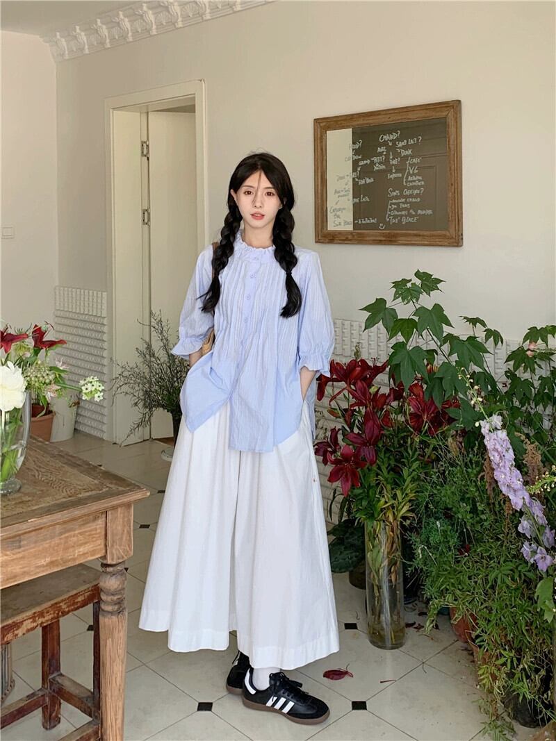 甘い気質ブルーランタンスリーブシャツ女性の夏のシックなデザイン菌シャツルーズシャツトップ 大人ガーリー スウィート キュート カジュアル サマー 夏物 bstraw80349991960 | beaute25