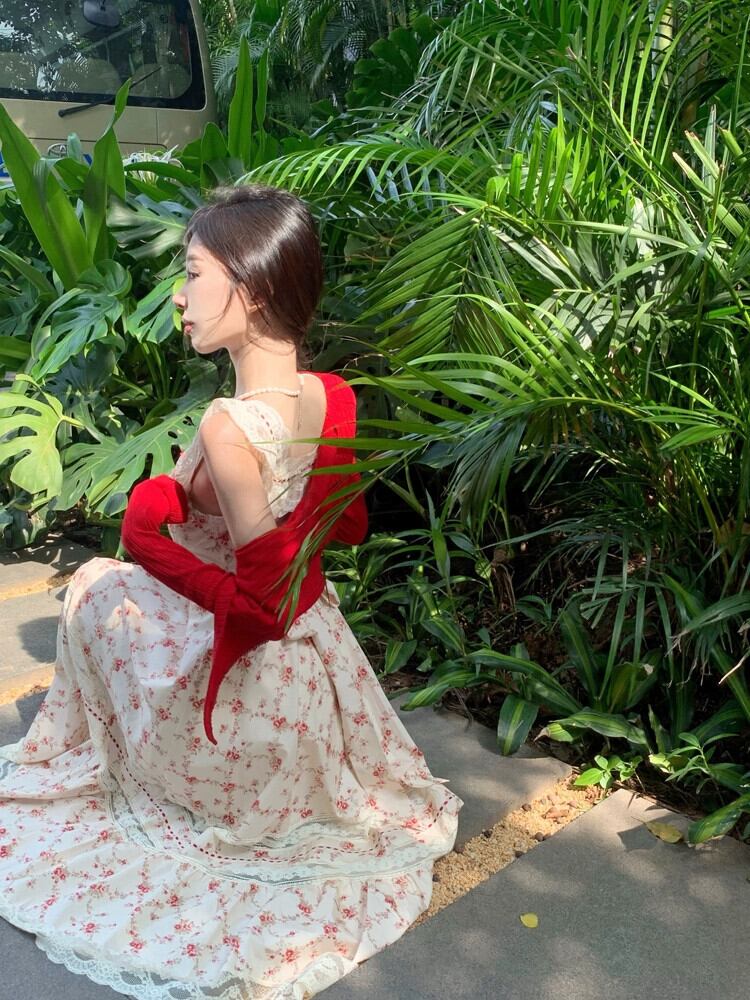 フレンチレトロな牧歌的なスタイルの花柄サスペンダードレス妖精夏スクエアネックレーススカートフィッシュボーン気質ロングスカート サマー 夏物 スクウェア bstraw41612537551 | beaute25