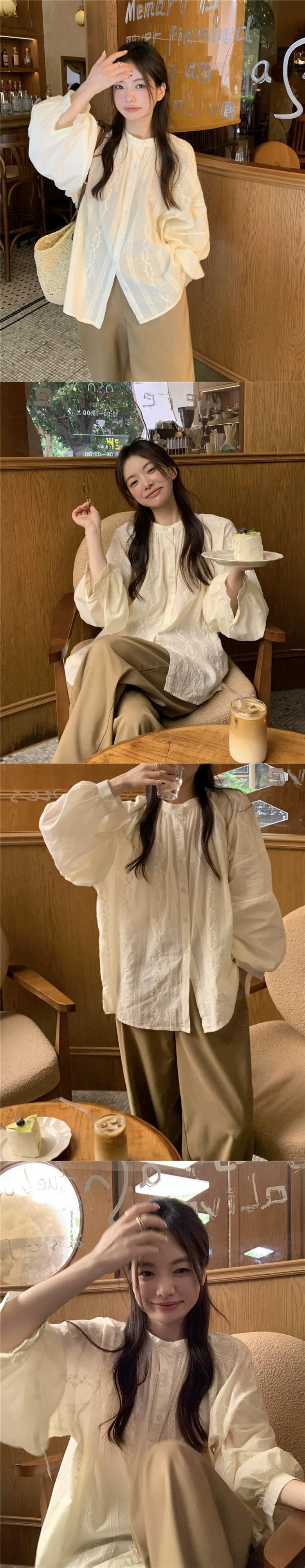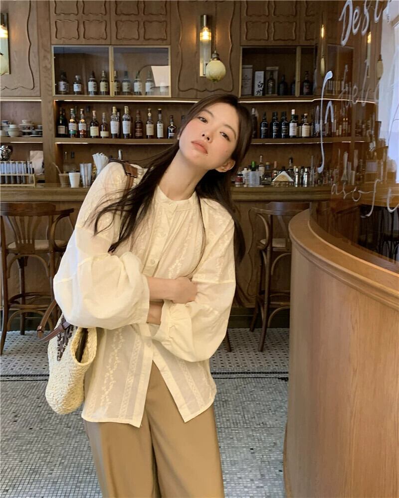 ゆったりとした長袖の刺繍入りシャツの女性、秋のデザイン、ニッチな日焼け防止シャツ、ランタンスリーブ、プチシックなトップ ロング レッド オータム 秋物 bstraw98656048924 | beaute25
