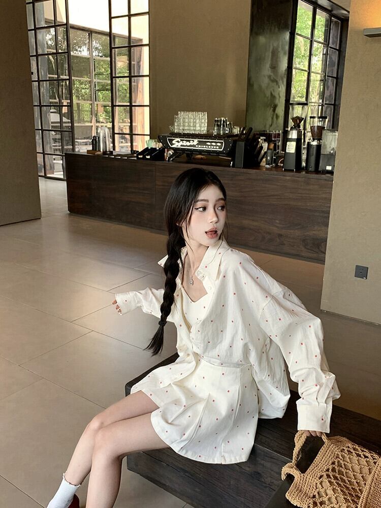 ホット水玉スーツ レディース 初秋 インナー キャミソール 長袖 日焼け止め シャツ トップス Aライン ショーツ 3点セット ロング オータム 秋物 ブルマー bstraw47715493723 | beaute25