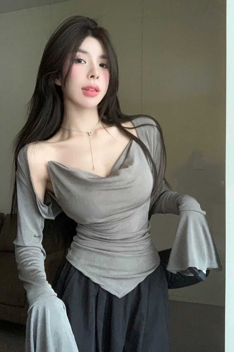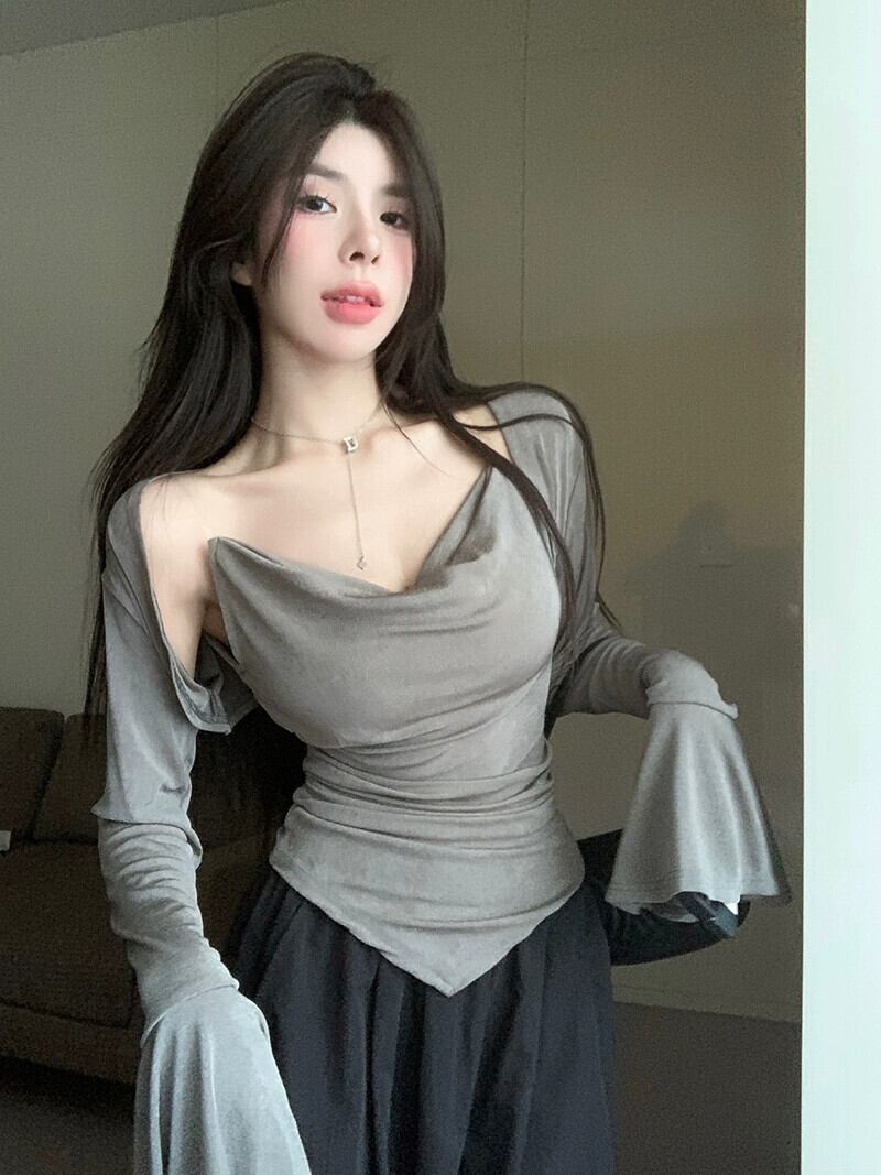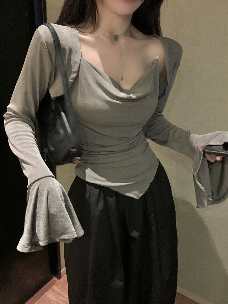 Pure lust セクシー スーツ イレギュラー サスペンダー ショート ベスト レディース 夏長袖日焼け止めブラウス トップ 2 点セット ロング サマー 夏物 bstraw47322648983 | beaute25