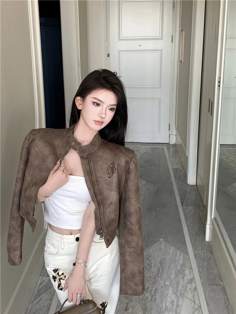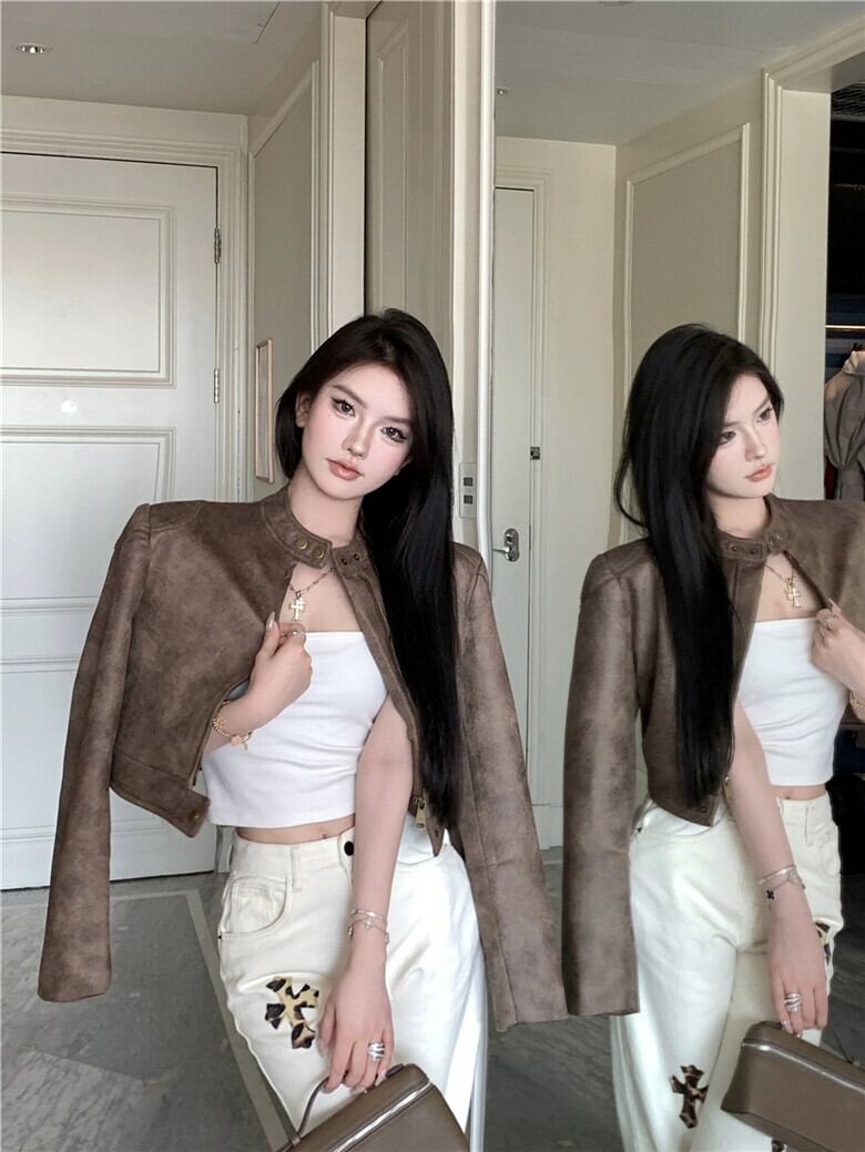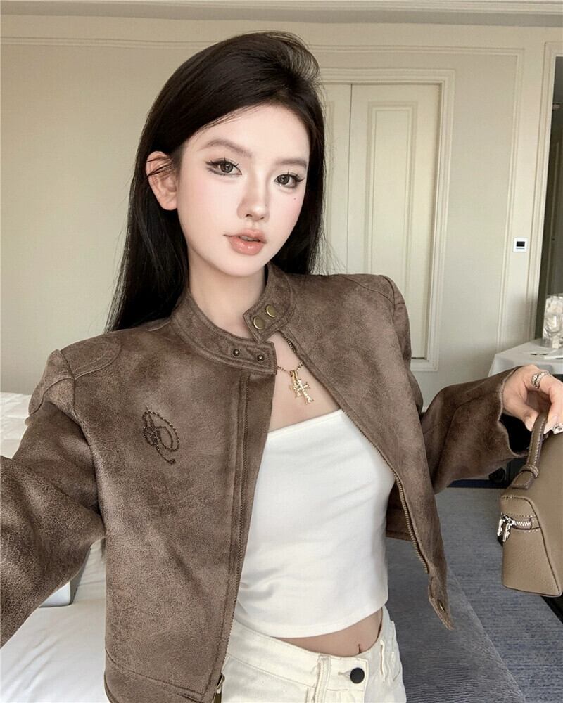 アメリカンレトロブラウン長袖コートの女性の秋 2023 新しいスエードカーディガンルーズショートハイエンドトップ ロング スウェード オータム 秋物 bstraw47337387080 | beaute25