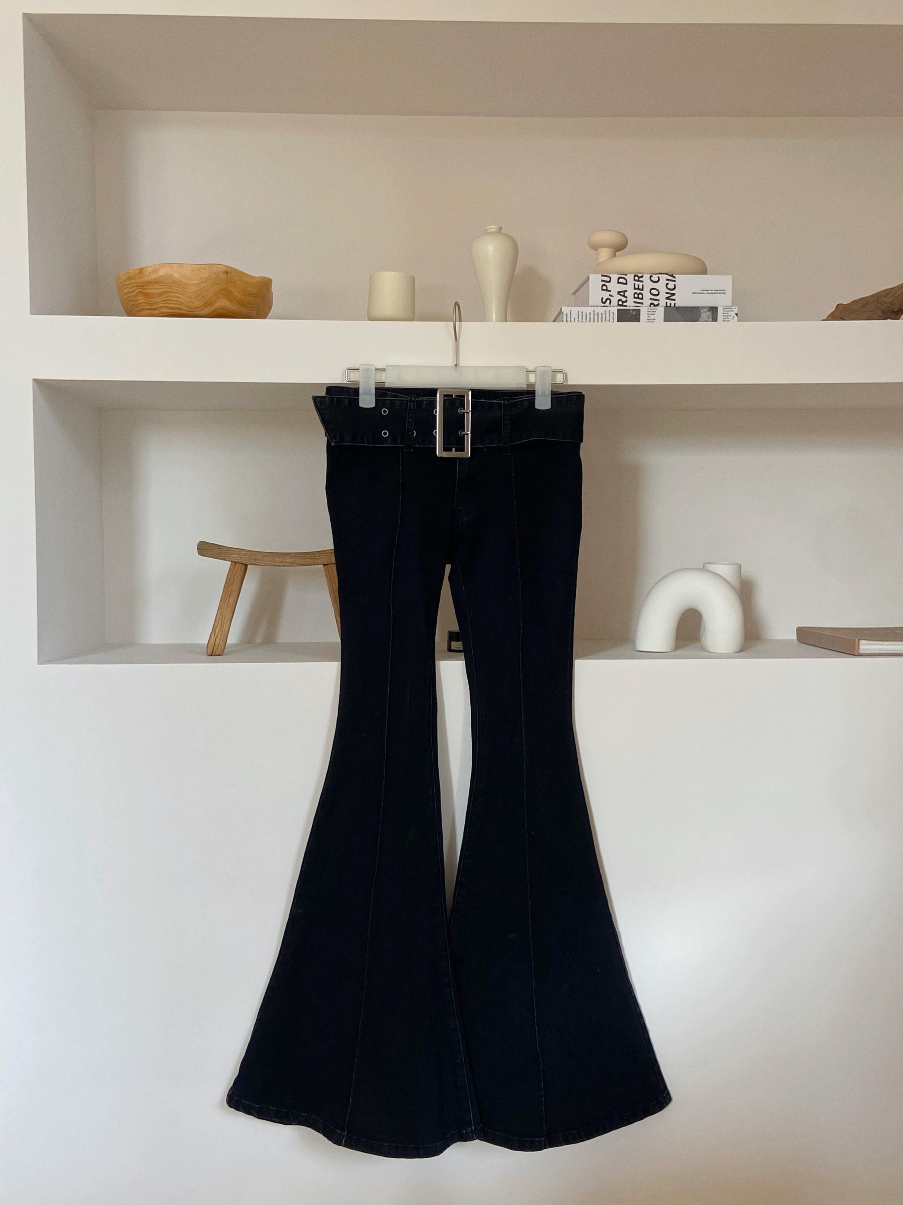 アメリカンレトロブラックジーンズレディース秋ベルトパンツスモールスリムストレートマイクロフレアフロアレングスパンツ レッド オータム 秋物 ハーネス bstraw24413992834 | beaute25