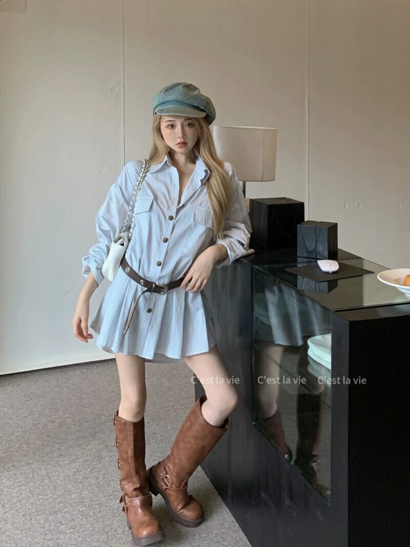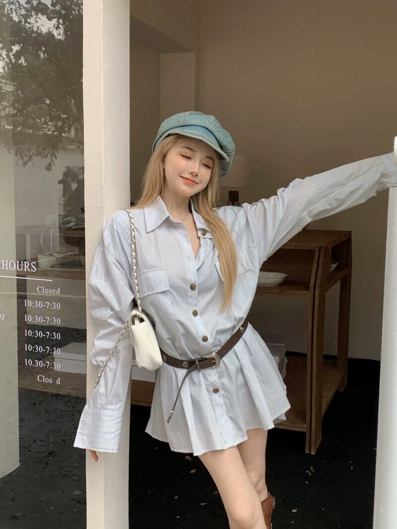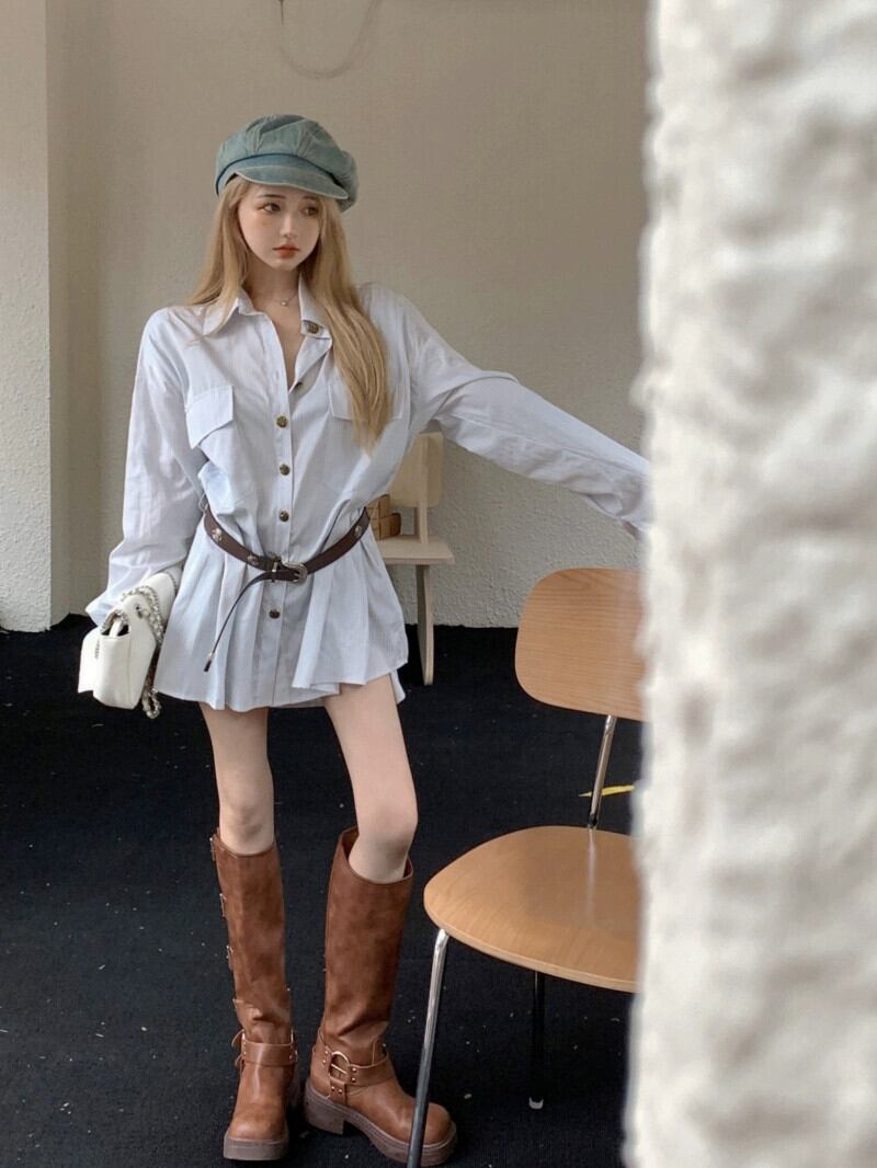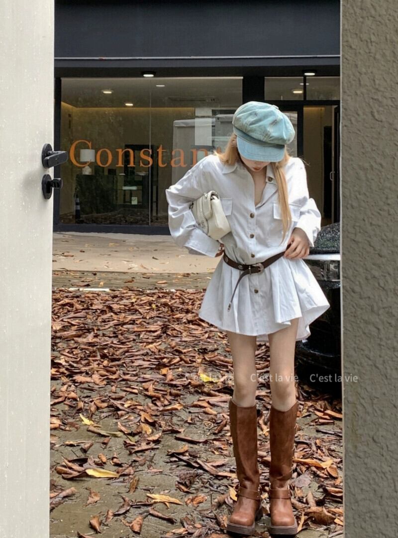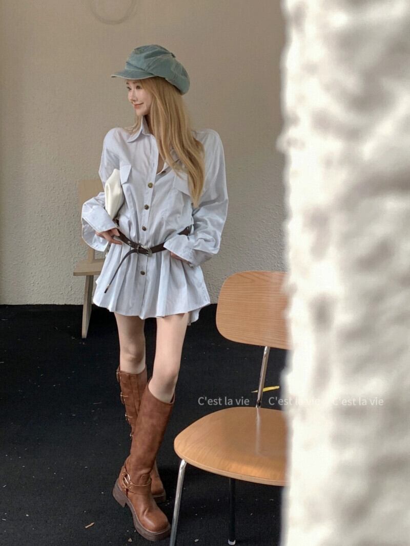色:ベルト付きシャツドレス