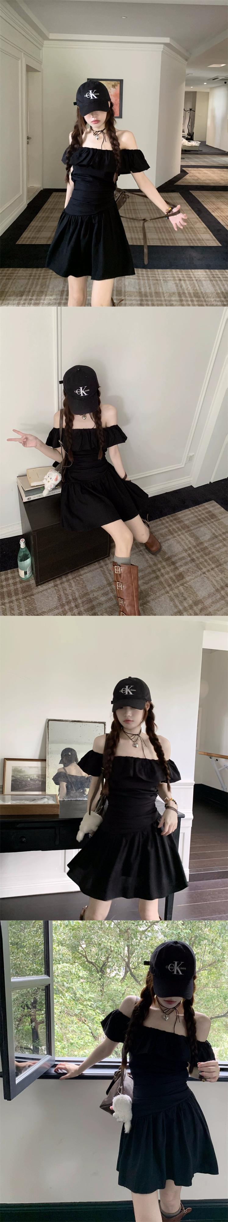 夏のフランスのワンショルダー半袖ドレスの女性、純粋な欲望、小さなフライングスリーブ、鎖骨スカート、ウエスト痩身、Aラインショートスカート サマー 夏物 ピュア bstraw6852532260 | beaute25