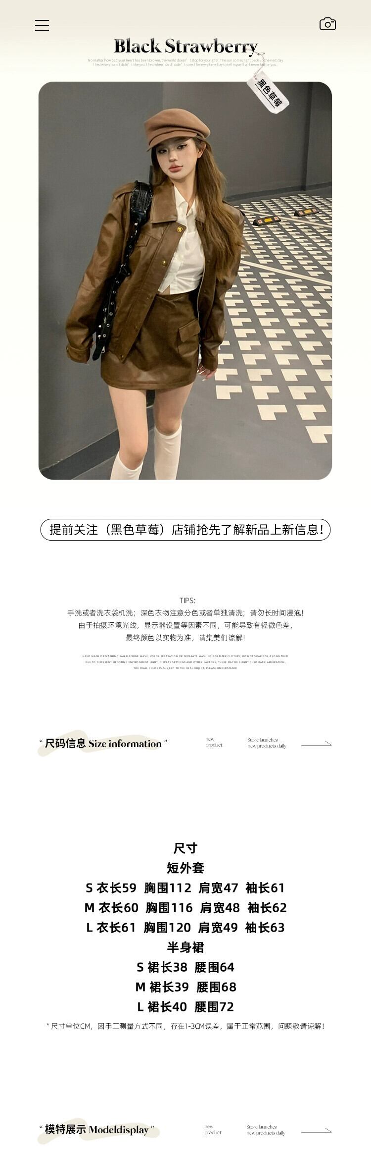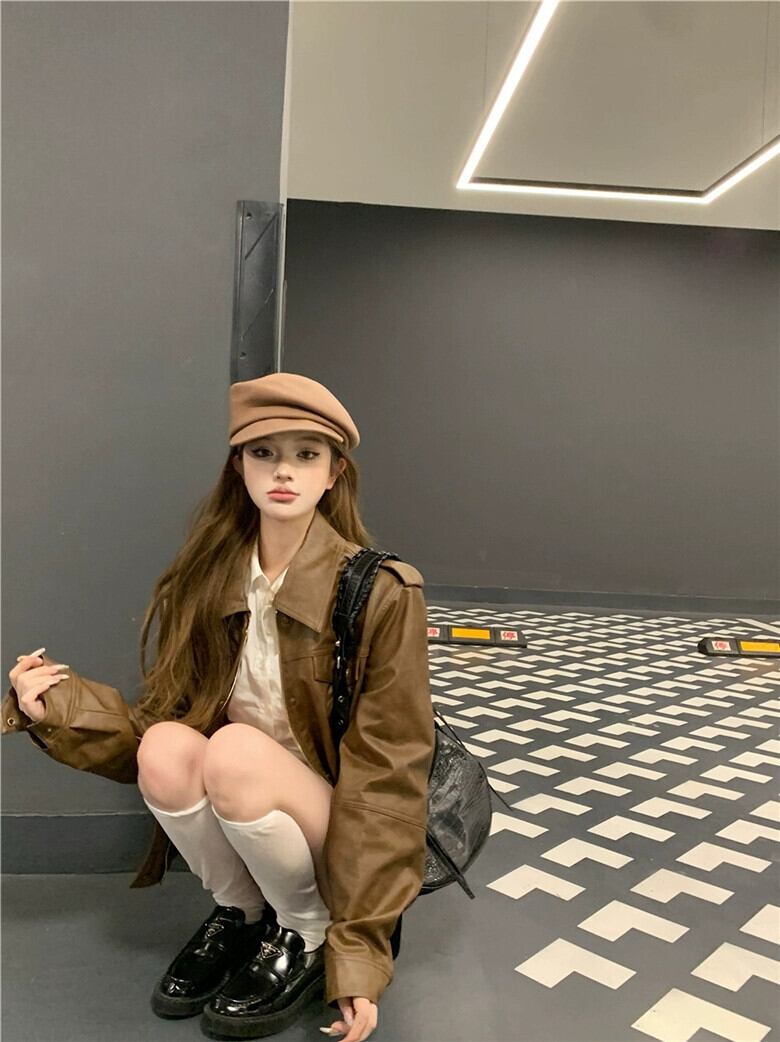 メイラードコーヒー色 pu レザーショートジャケットレザージャケット女性秋 2023 新しいレトロ香港スタイルルーズジャケットトップ オータム 秋物 bstraw47280759351 | beaute25
