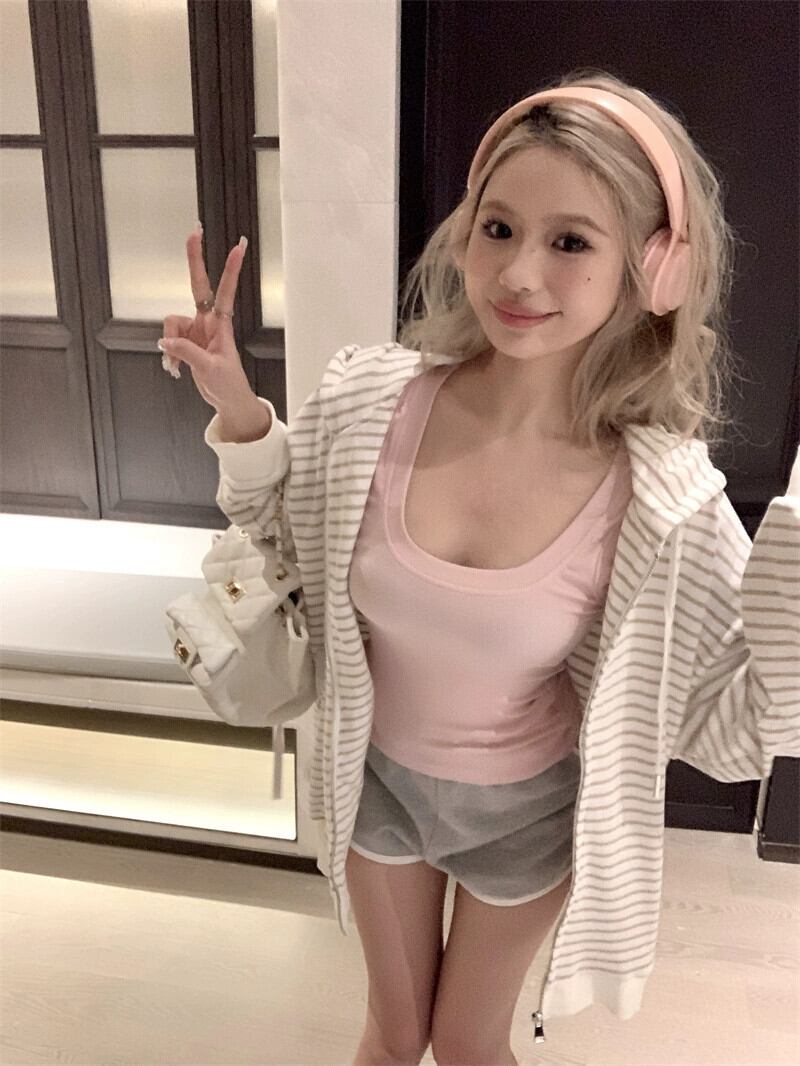 スポーツスーツストライプフード付きトレーナージャケットキャミソールレディース秋ハイウエストショーツウォーキング 3 点セット オータム 秋物 ブルマー bstraw33827287496 | beaute25