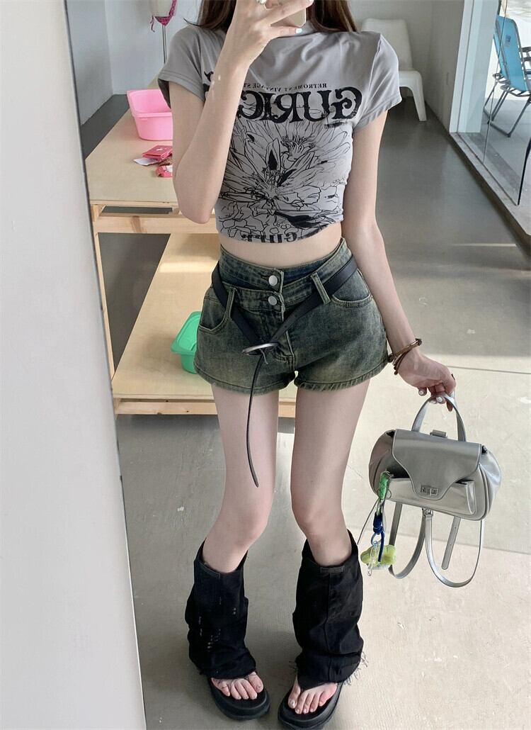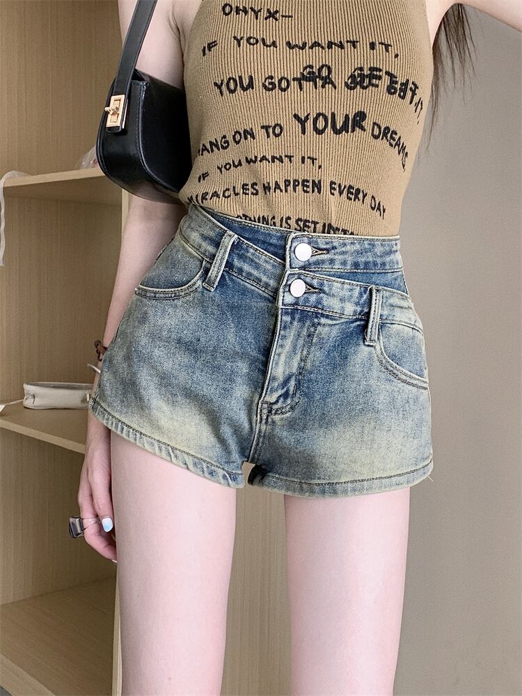 ホットレトロデニムスーパーショートパンツ女性の夏のハイウエストスリムセクシーパンツ小さなストレートワイドレッグパンツ サマー 夏物 ショーツ ブルマー bstraw17263991565 | beaute25