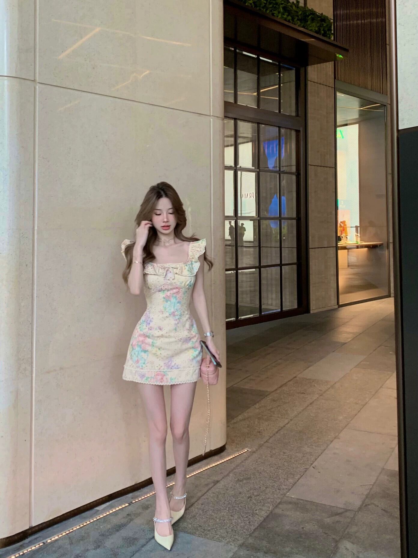 フレンチスクエアネック重工業プリント小さな飛行袖ドレス女性の夏の弓ウエストラップヒップショートスカート気質スカート リボン サマー 夏物 スクウェア bstraw43404246119 | beaute25