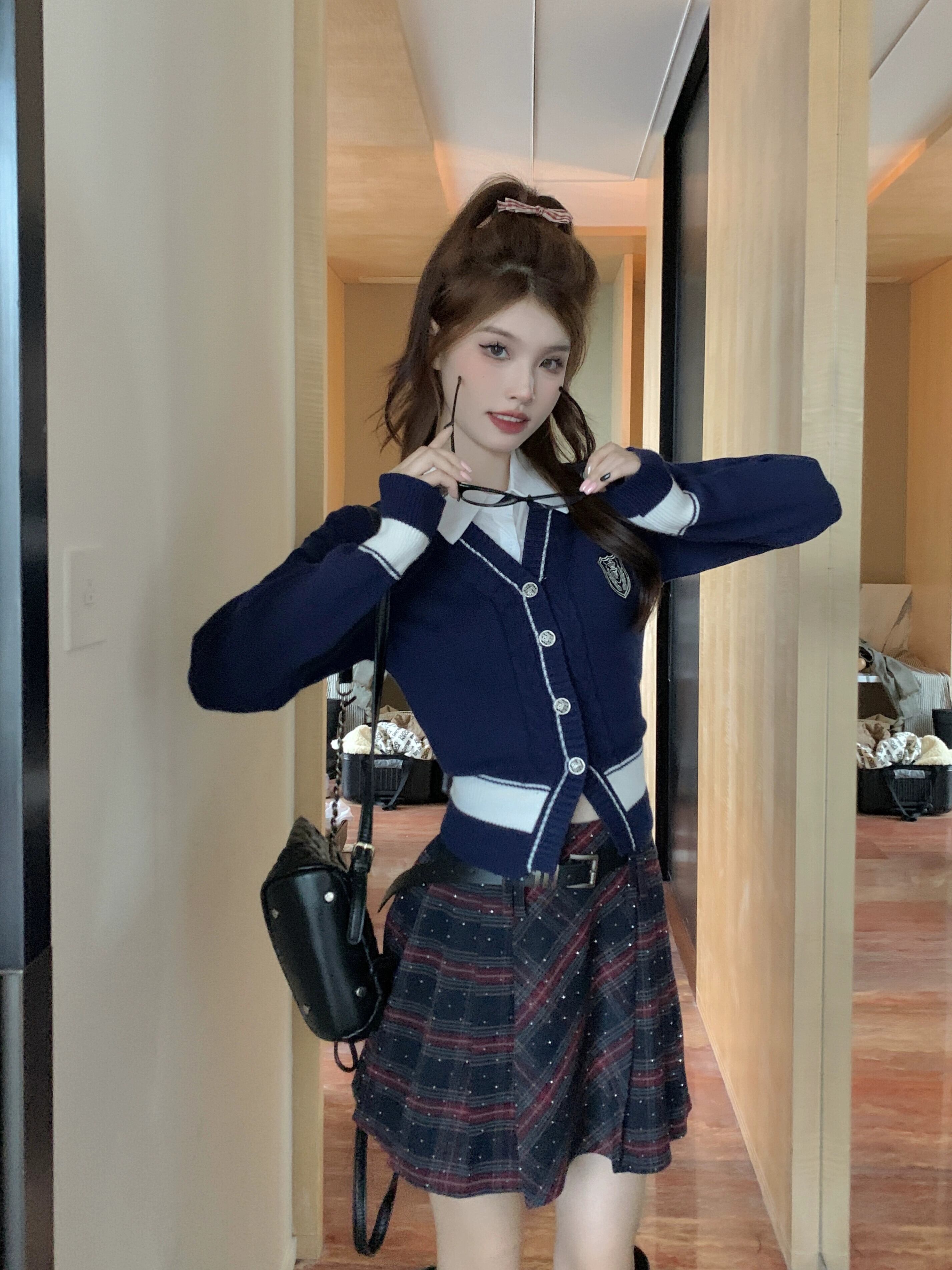 スタイル長袖セーターニットカーディガン女性秋フェイクツーピースアウターウェア小さなスリムフィットショートパッチワークトップ ロング オータム 秋物 bstraw29311262967 | beaute25