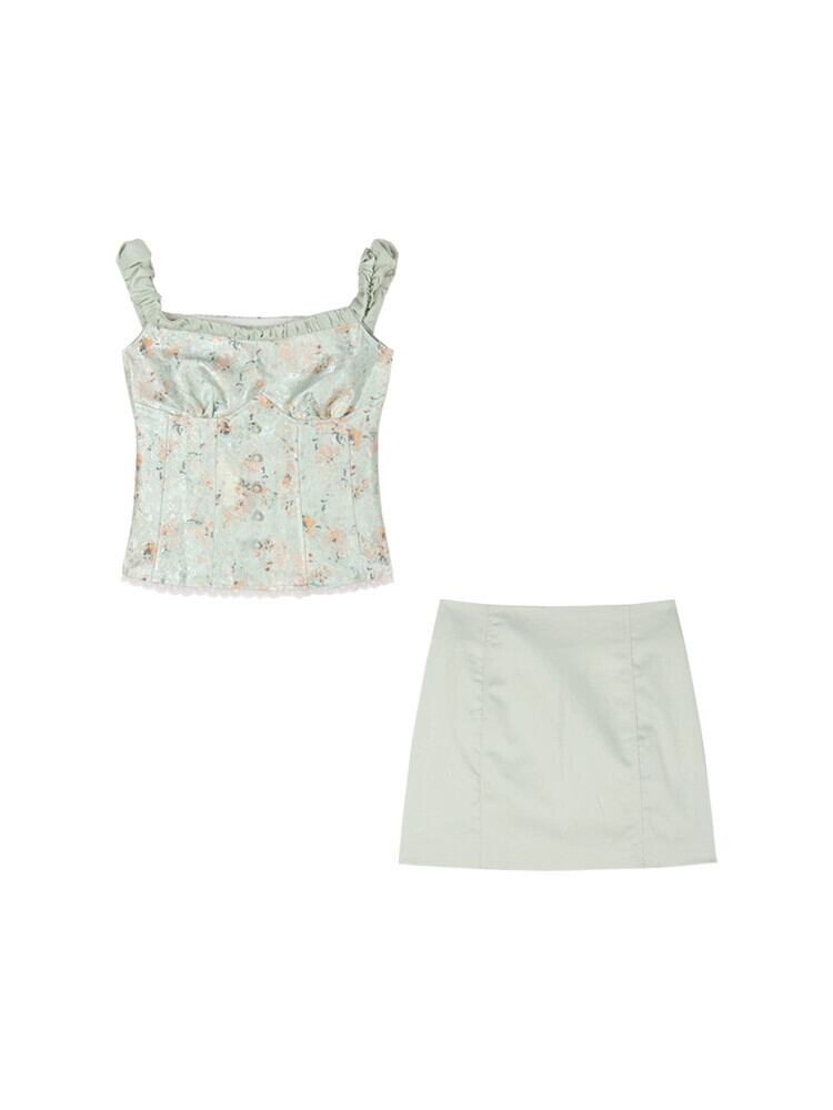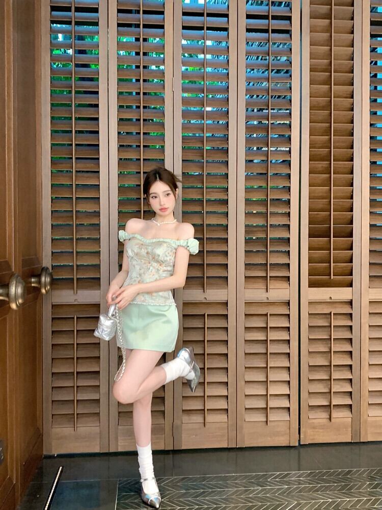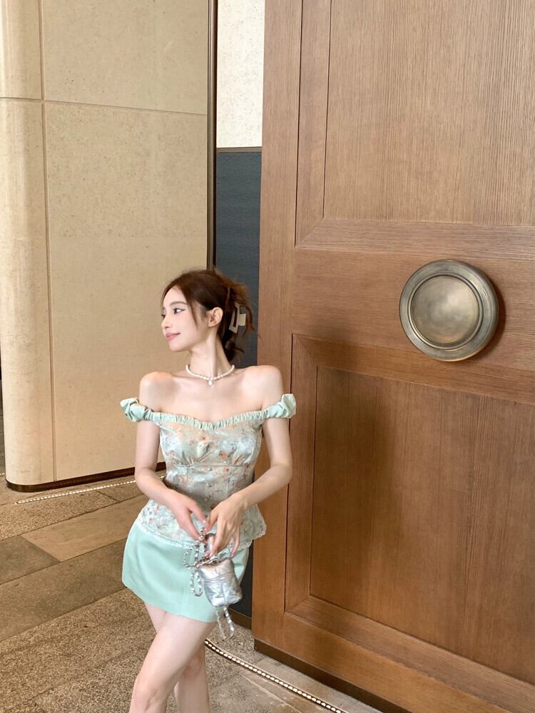夏に着用できるフランスの花柄ワンショルダー チューブ トップ、スリム フィットのフィッシュボーン レース スプライシング ノースリーブ トップ サマー 夏物 bstraw63417932025 | beaute25
