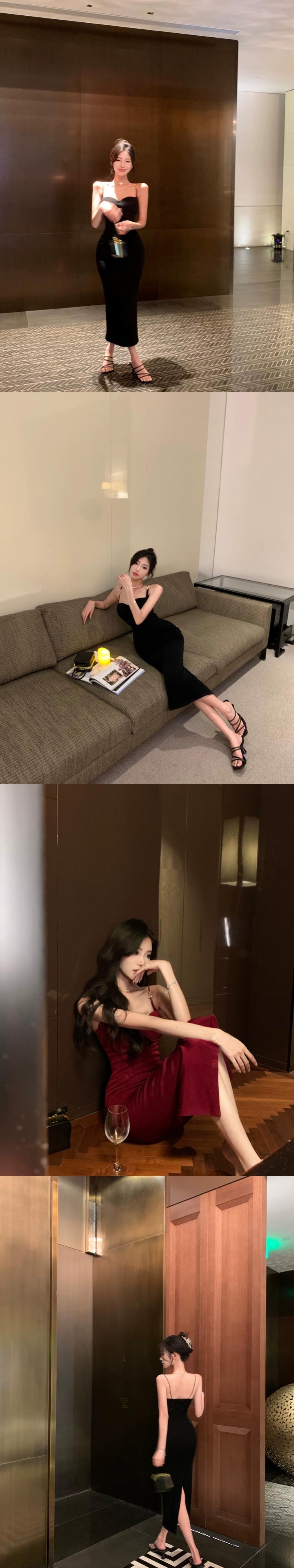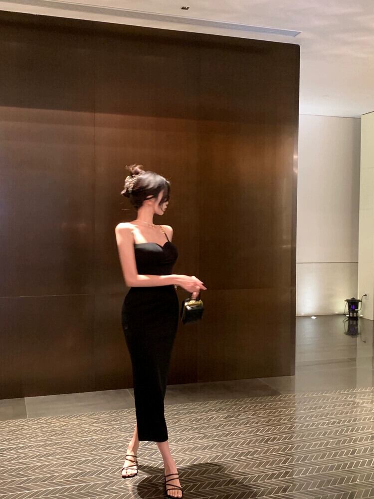 フレンチスタイルの赤いサスペンダードレスの女性の夏のハイエンドスカートスリムスリットセクシーなヒップカバーロングスカート レッド サマー 夏物 bstraw42306753719 | beaute25