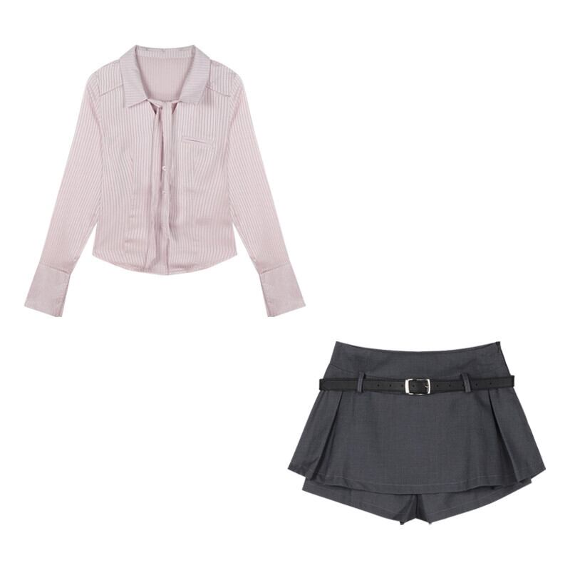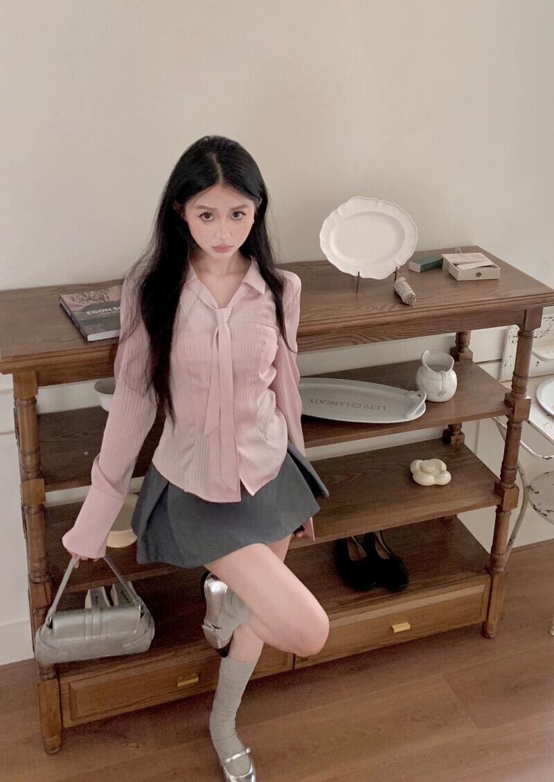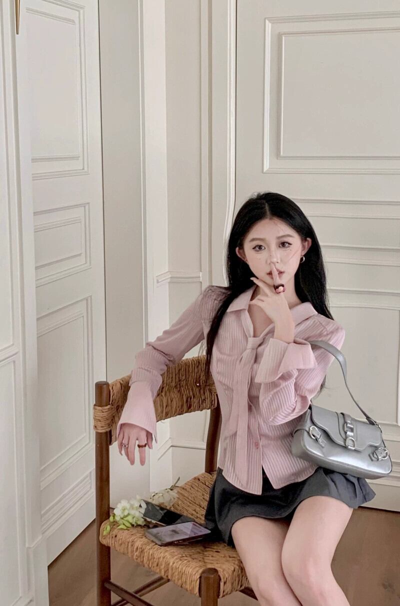 ピンクフレンチウエストタイシャツトップ秋2023新スタイル甘い長袖スリムカーディガンシャツ ロング 大人ガーリー スウィート キュート カジュアル オータム 秋物 bstraw58281083392 | beaute25