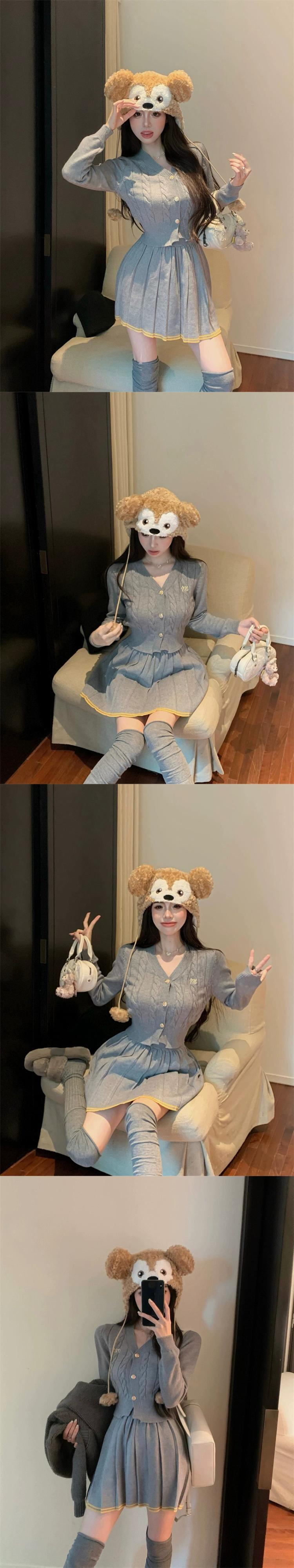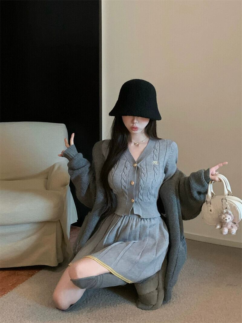 色:グレートップ,グレースカート,ベージュトップ,ベージュのスカート,グレーコート,ベージュコート