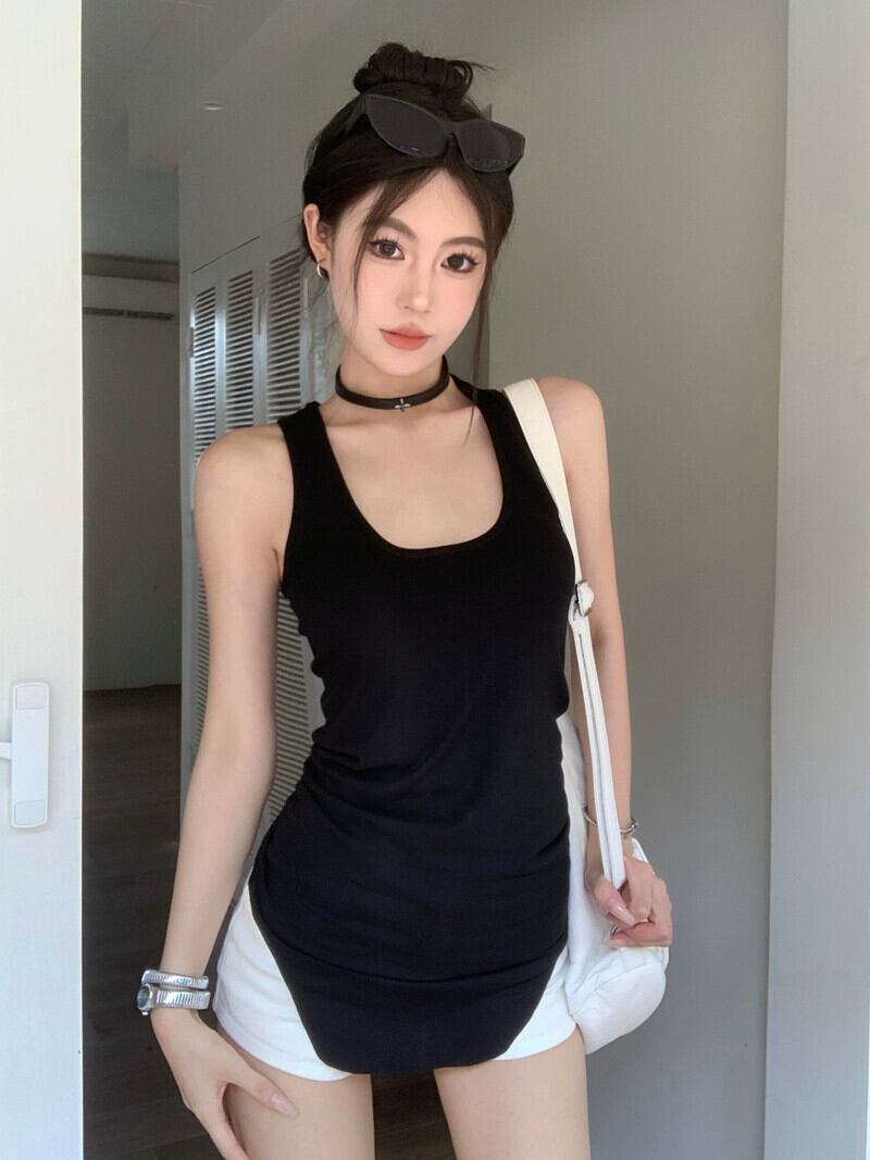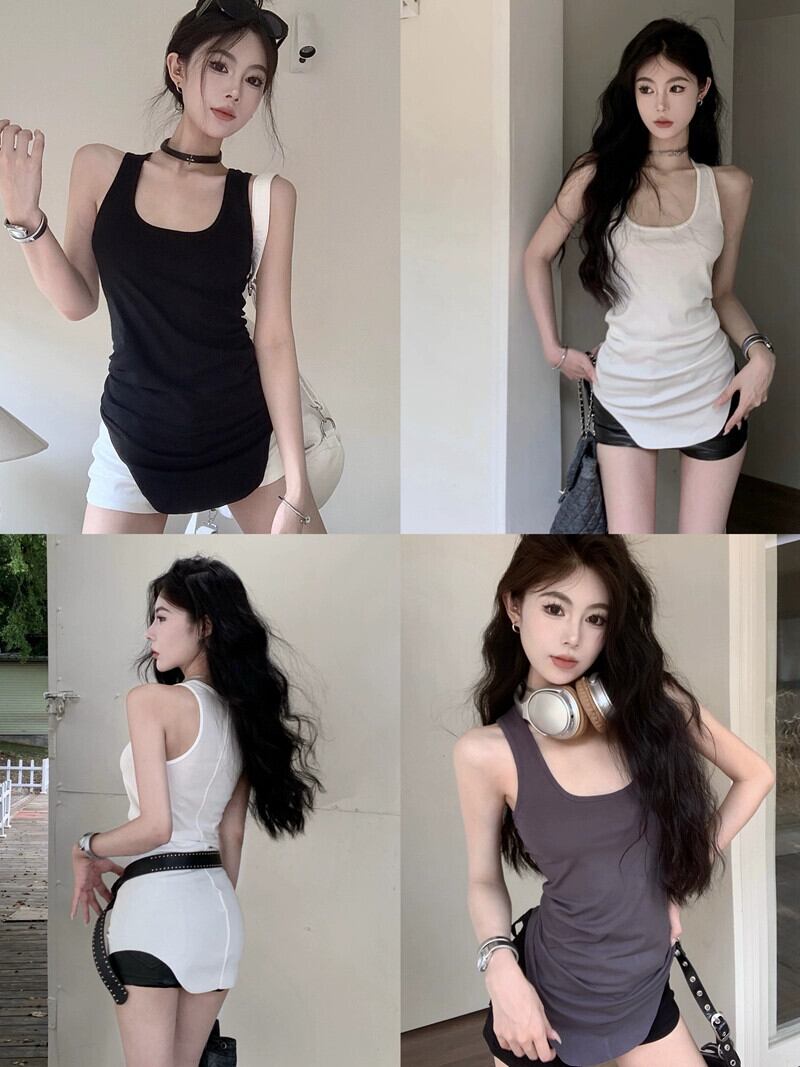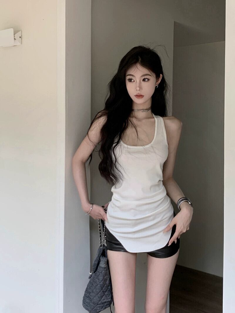 アメリカン ホワイト ミッドレングス レーサー ベスト サスペンダー レディース 夏 U 字型裾 スリム ノースリーブ トップ 屋外で着用可能 サマー 夏物 bstraw69044219523 | beaute25