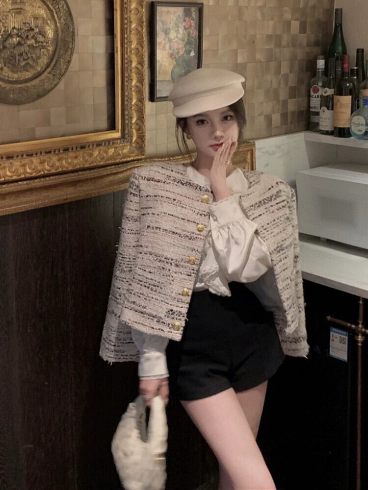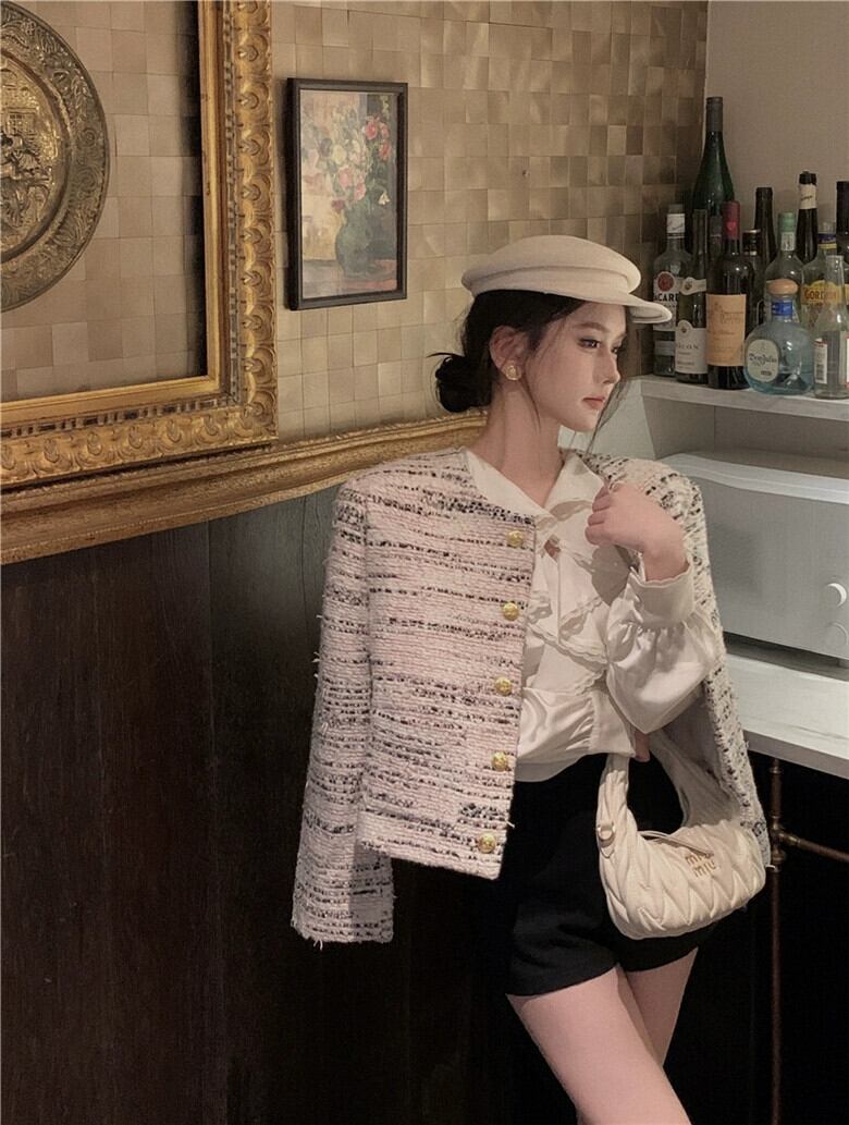 Xiaoxiangfeng ツイードショートコート女性の秋のハイエンドエレガントな女性ルーズショート長袖カーディガントップ ロング オータム 秋物 bstraw18081032106 | beaute25