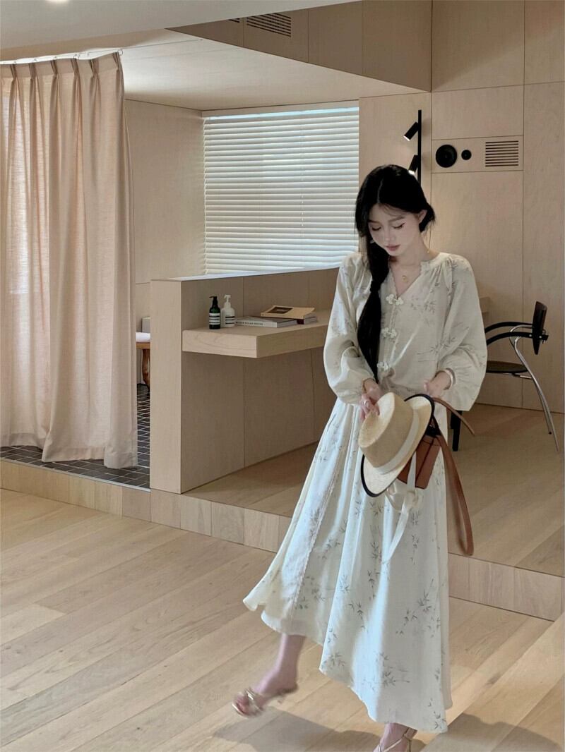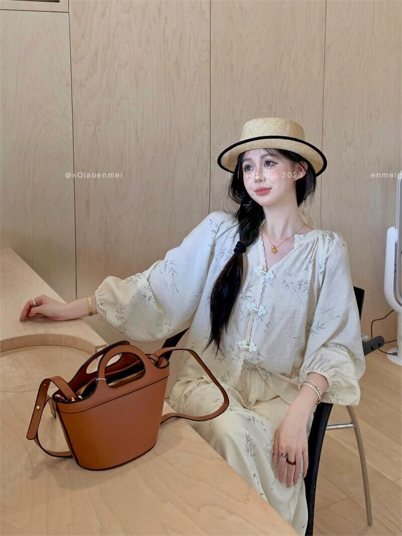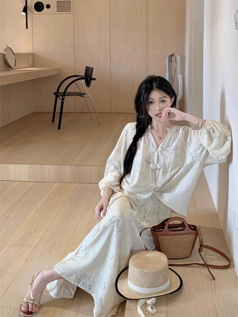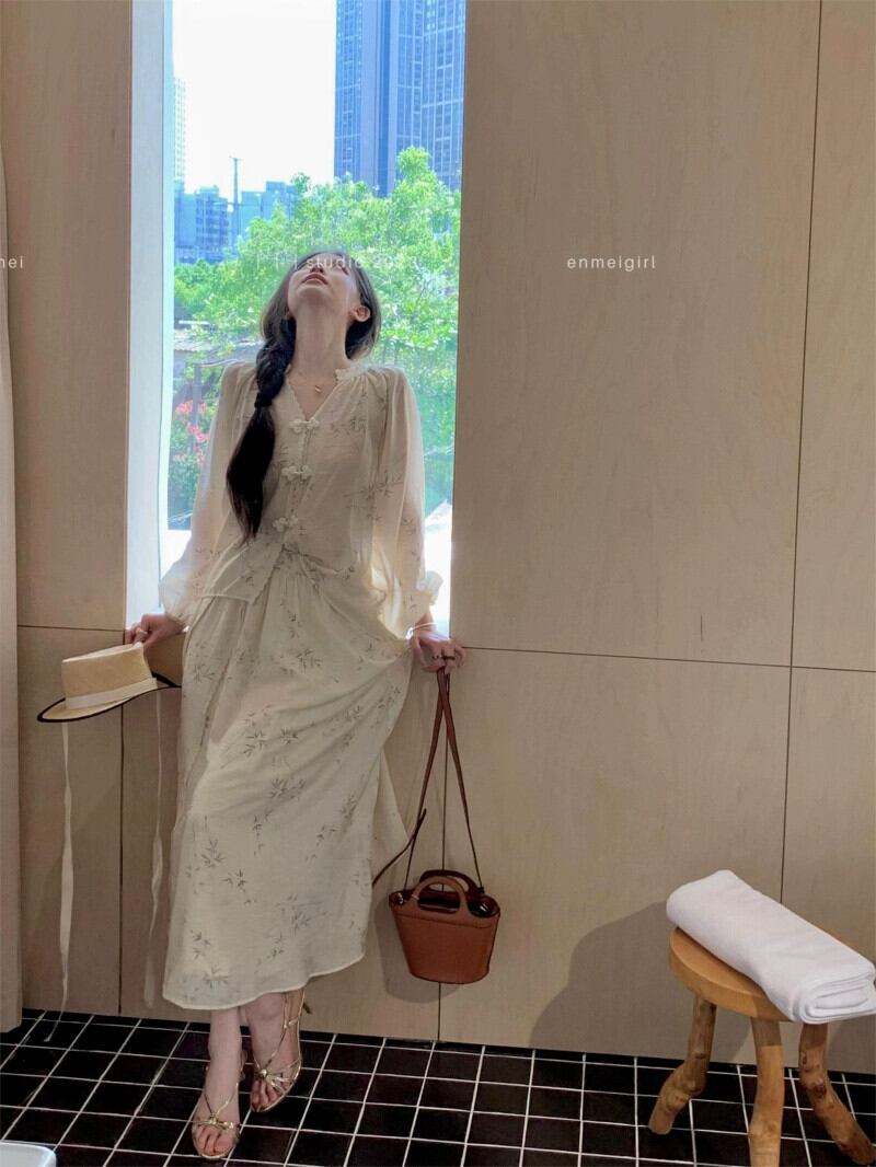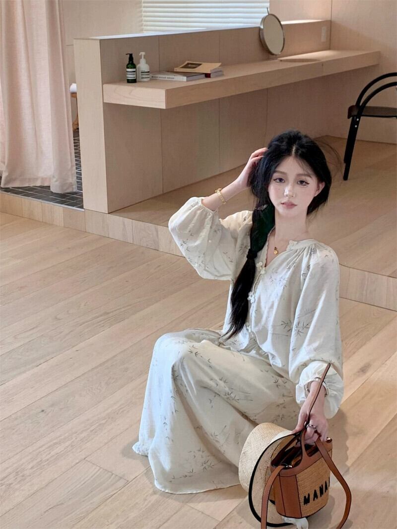 中国風国民風スーツ禅長袖シャツ女性秋ハイウエスト A ラインスカート甘くて優しい 2 点セット ロング 大人ガーリー スウィート キュート カジュアル オータム 秋物 Aライン bstraw53823836779 | beaute25