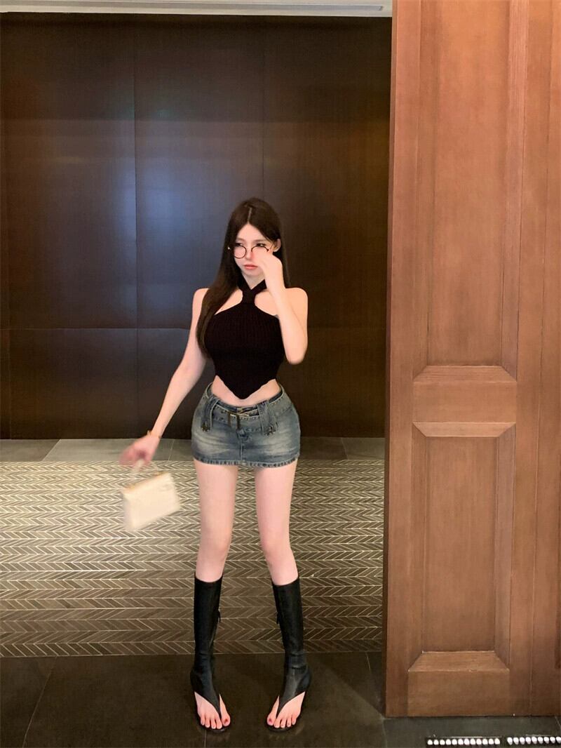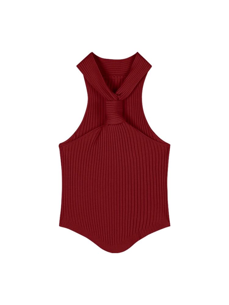 秋の純粋な欲望スタイルのニット ホルターネック キャミソール女性、セクシーなインナーウェア、不規則なスリム ショート トップ、アウターウェア オータム 秋物 bstraw3072694442 | beaute25