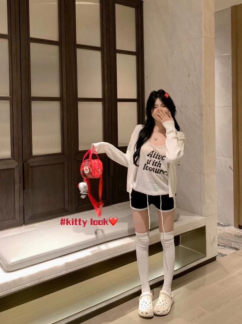 色:レースベスト,スポーツショーツ,ツイストセーター