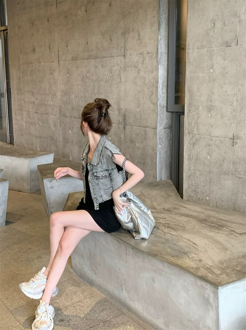 スイートクールスーツ黒キャミソールデニムベストジャケット女性の夏のセクシーなヒップハグショートスカート 3 点セット ブラック 大人ガーリー スウィート キュート カジュアル サマー 夏物 bstraw71690832435 | beaute25
