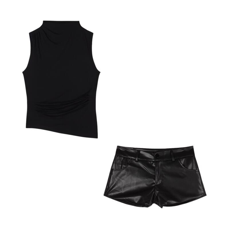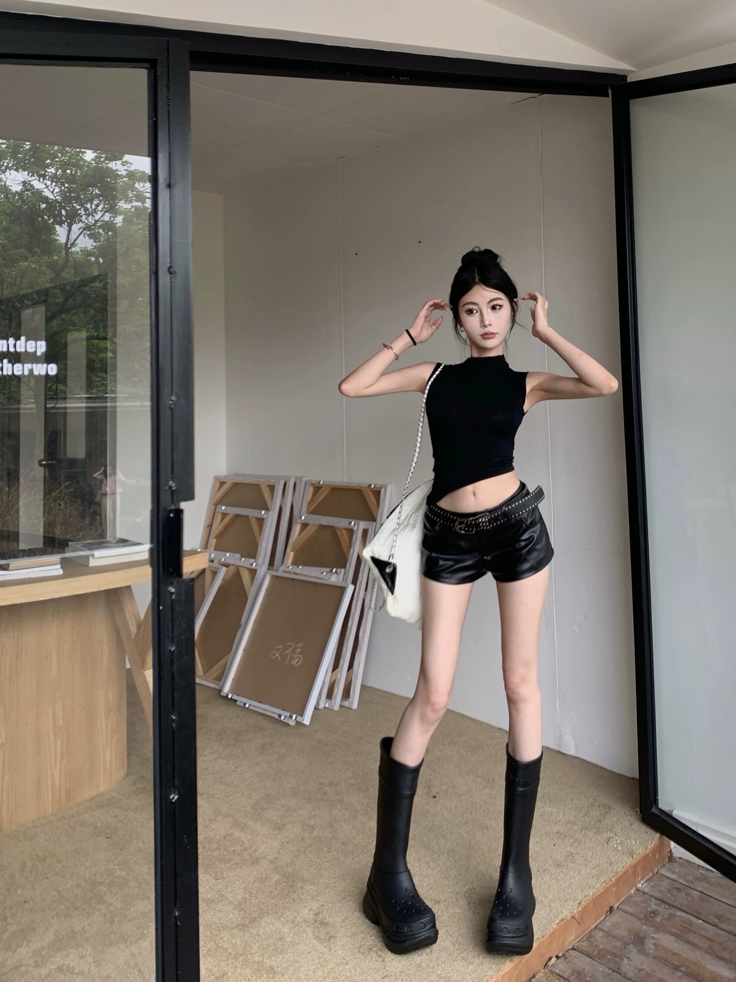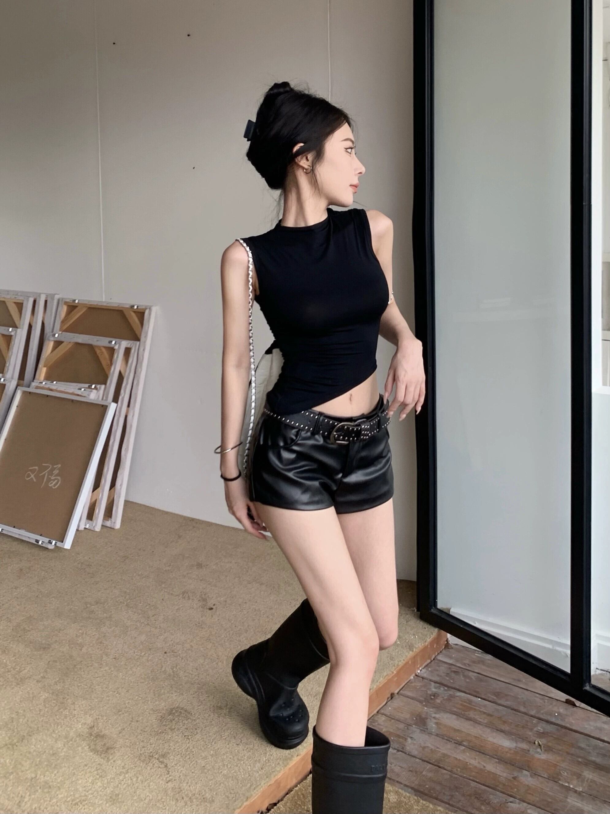 ホットガールレザーパンツショーツ女性の夏黒ウエストスリムホットパンツ多用途小さなストレートレッグワイドレッグパンツ ブラック サマー 夏物 ブルマー ワイドパンツ bstraw1522687647 | beaute25