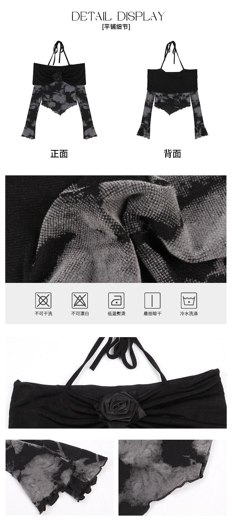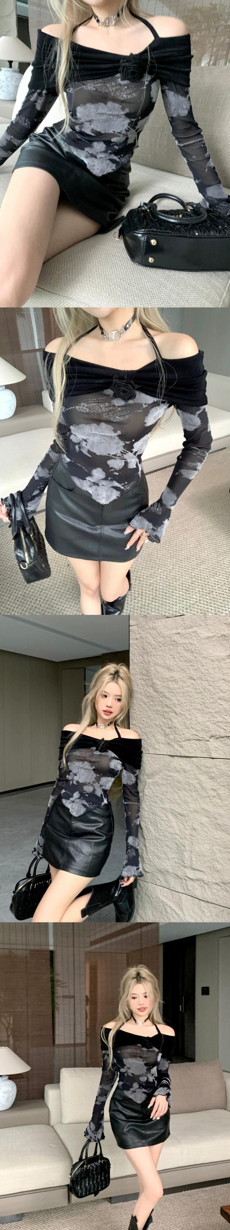 甘いクールネクタイワンショルダープリント Tシャツ女性初秋シックスリムショート長袖メッシュブラックホルタートップ ロング 大人ガーリー スウィート キュート カジュアル オータム 秋物 bstraw12109151692 | beaute25