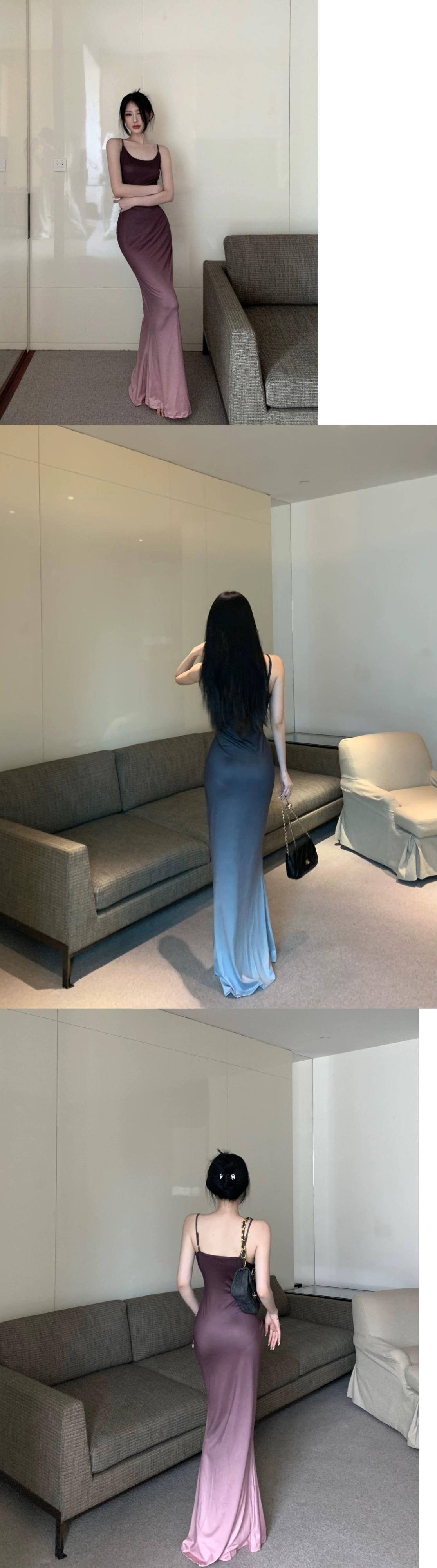 純粋な欲望スタイルグラデーションサスペンダードレス女性の夏の背中の開いたスカートスリムセクシーなウエストバッグヒップスカートフィッシュテールロングスカート サマー 夏物 bstraw97489430827 | beaute25