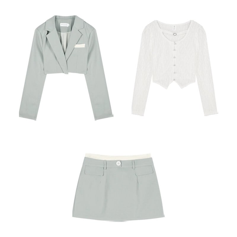 Yujie 軽くて大人なスタイルのスーツ、ショート スーツ ジャケットとシャツの内側、女性の秋のハイウエスト A ライン スカート 3 点セット オータム 秋物 Aライン bstraw65836210440 | beaute25