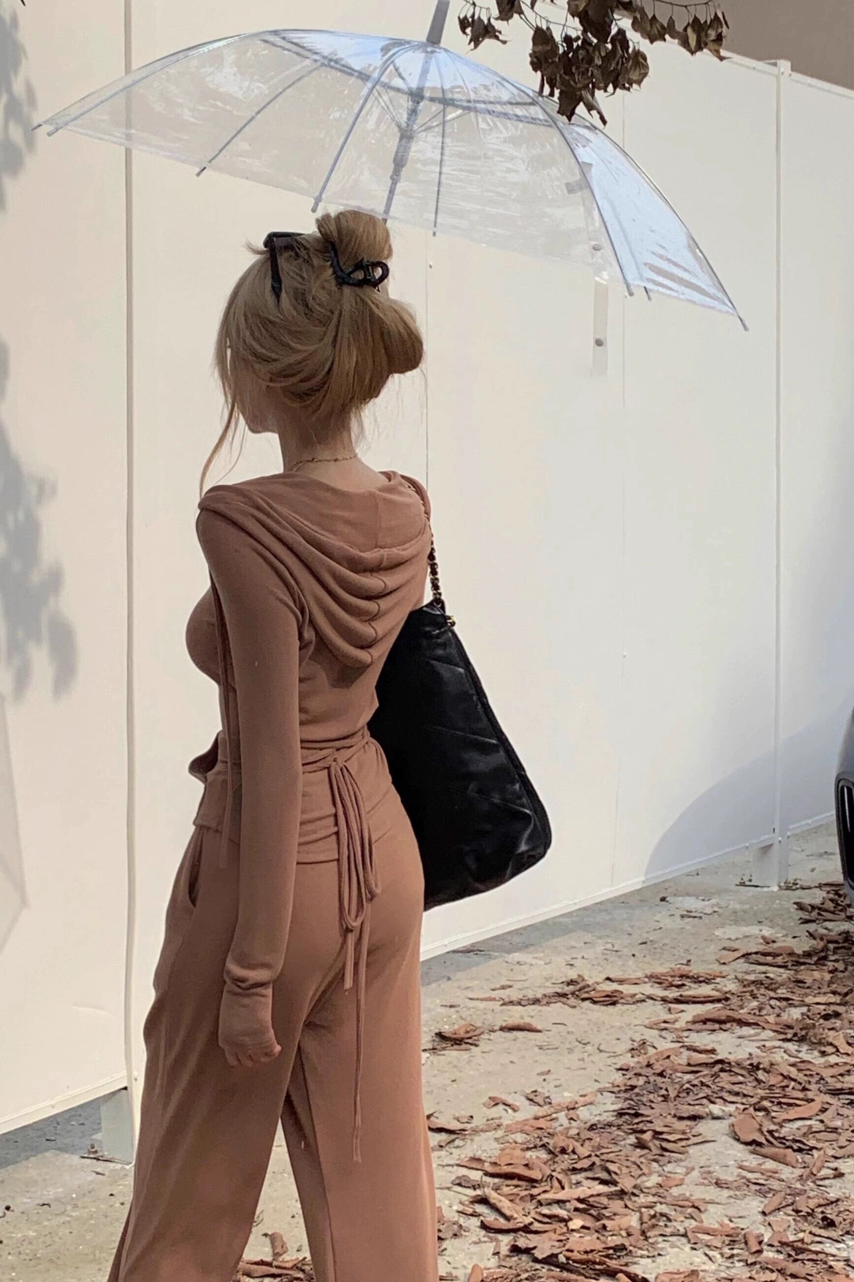 フード付きカーディガン トレーナー ジャケット レディース 秋 スポーツ スーツ ドレープ ワイドレッグ パンツ 小さい 2 点セット オータム 秋物 bstraw13666317805 | beaute25