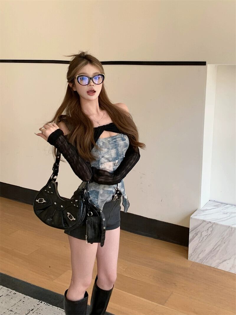 秋のアメリカンワンショルダー長袖Tシャツレディース、不規則なスリムフィット、ショートスタイル、シックなフェイクツーピーススプライシングトップ ロング オータム 秋物 bstraw52437457985 | beaute25