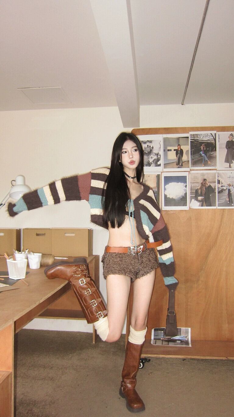 コントラストカラーストライプ長袖ニットカーディガンレディース秋スリムフィットショートレースアップセータージャケットトップアウター ロング オータム 秋物 bstraw74640712198 | beaute25