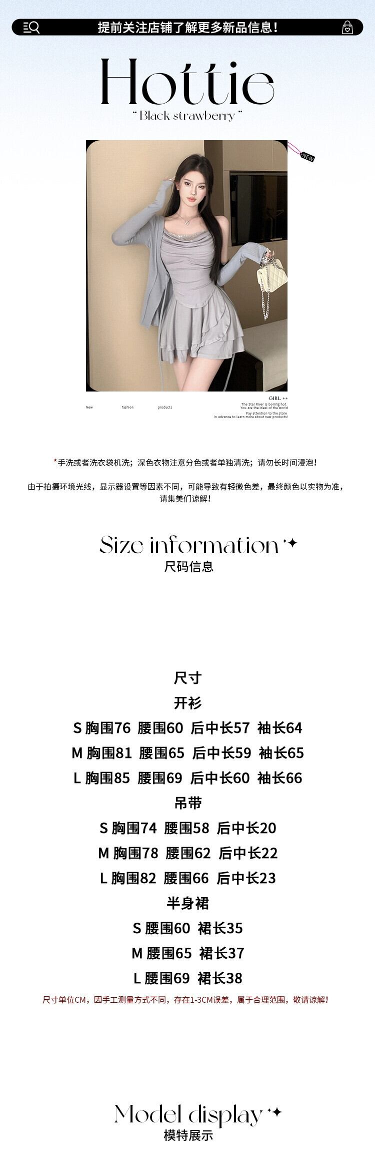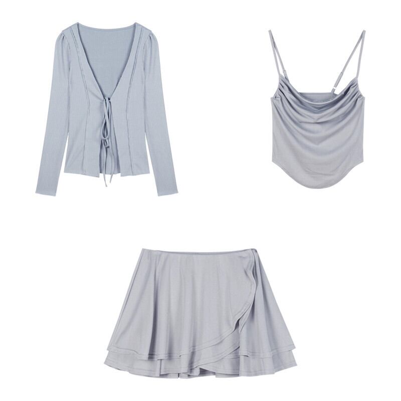 Pure Desire セクシーなレースサスペンダー長袖カーディガントップセットレディース秋フリルスカートグレー 3 点セット ロング オータム 秋物 bstraw25535272187 | beaute25