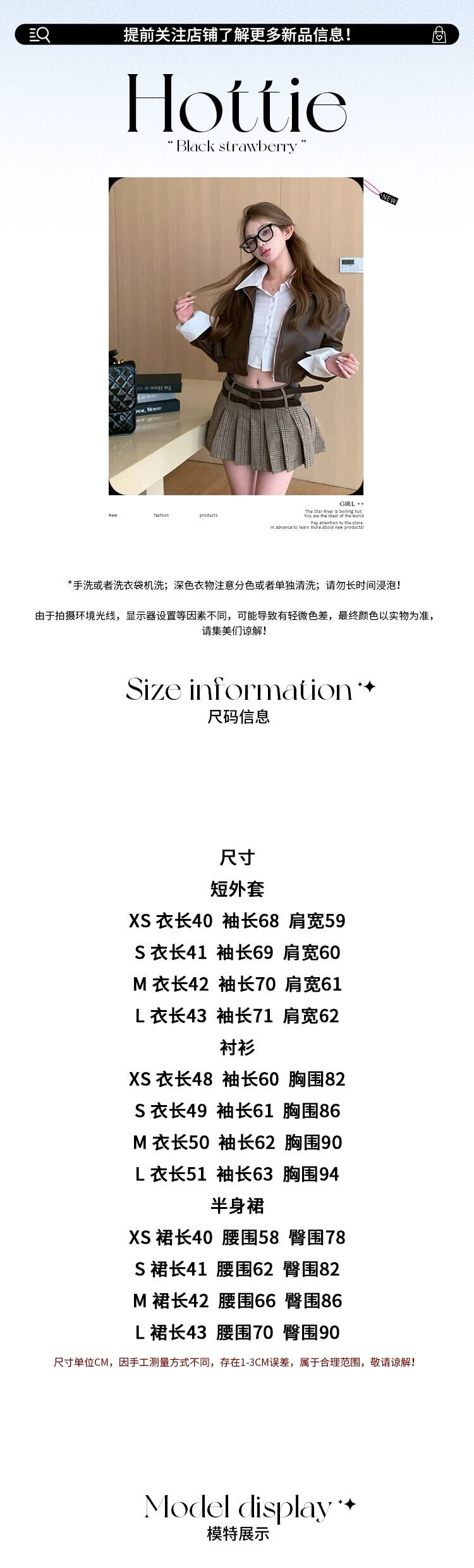 色:ブラウンコート,白のシャツ,ベルト付きスカート