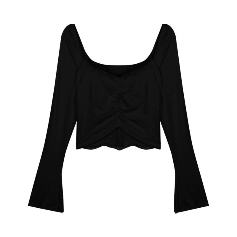 純粋な欲望スタイル白 V ネック長袖底シャツ Tシャツ秋のセクシーなレースのスプライシングスリムショートトップ ロング ホワイト オータム 秋物 Vネック bstraw21763316287 | beaute25