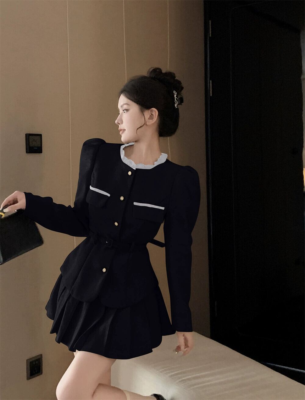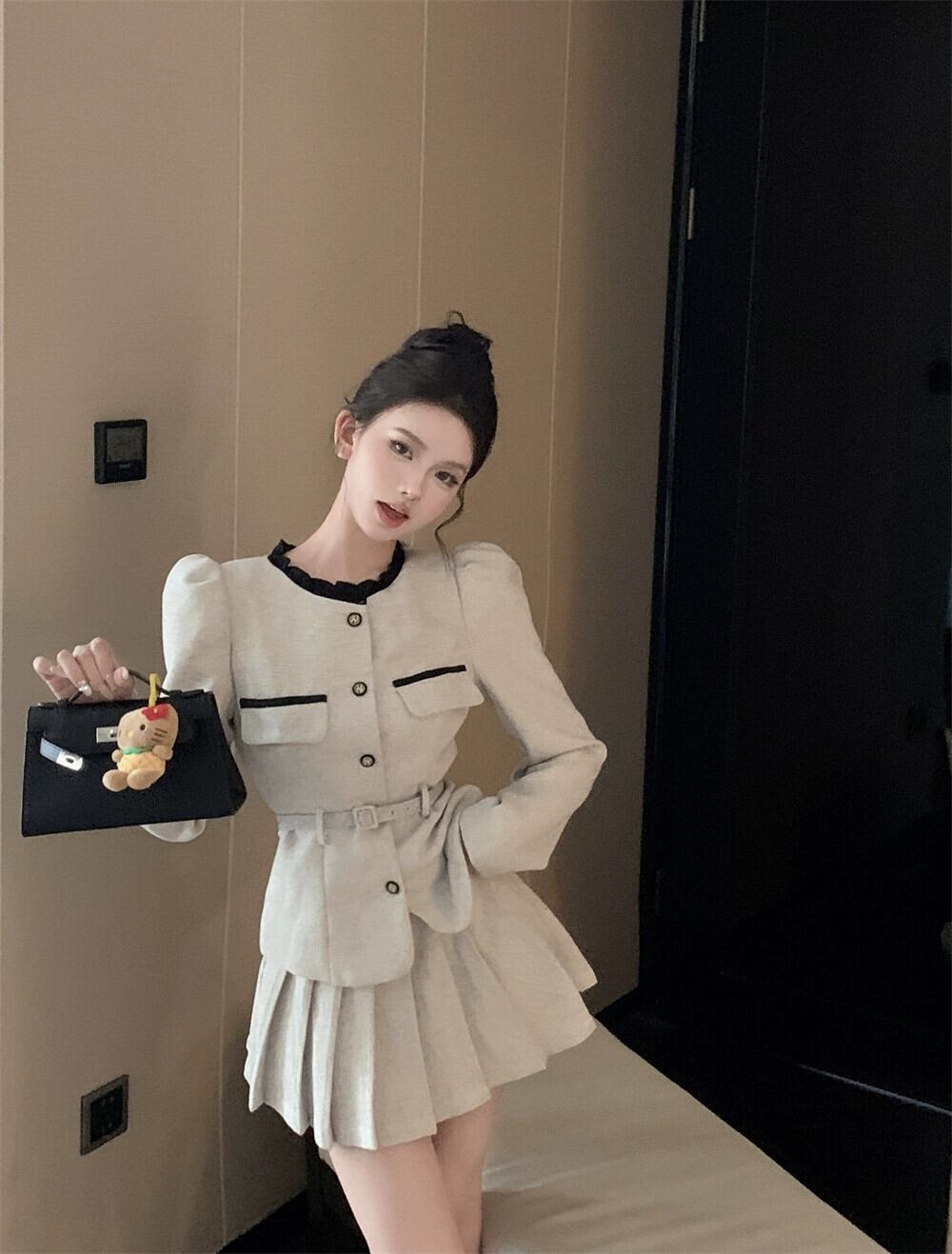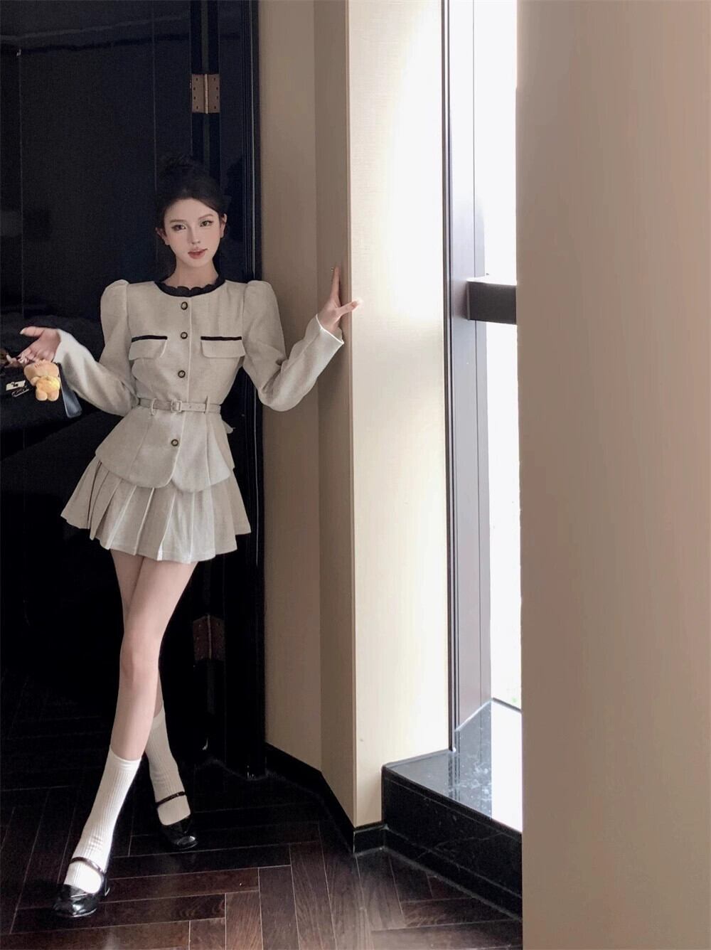 Xiaoxiang スタイルのレディスーツ女性の秋の長袖ウエストコートトップハイウエスト A ラインプリーツスカート 2 点セット ロング オータム 秋物 Aライン bstraw47667459581 | beaute25