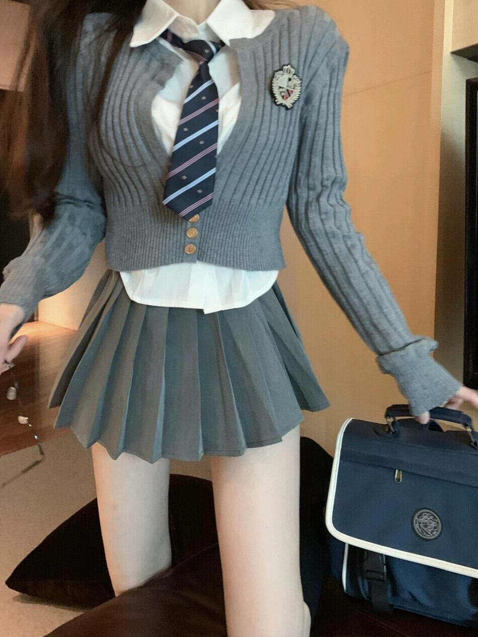 色:シャツ+ネクタイ,プリーツスカート,ニットカーディガン