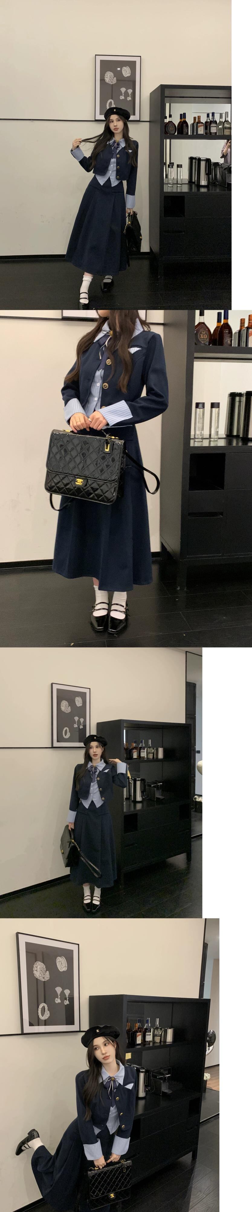 色:ネイビーブルーのトップ、無料の蝶ネクタイ付き,グレーピンクのトップス、無料の蝶ネクタイ付き,KaXingトップには無料の蝶ネクタイが付属しています,ネイビーブルーのスカート,アッシュピンクのスカート,コーヒースカート