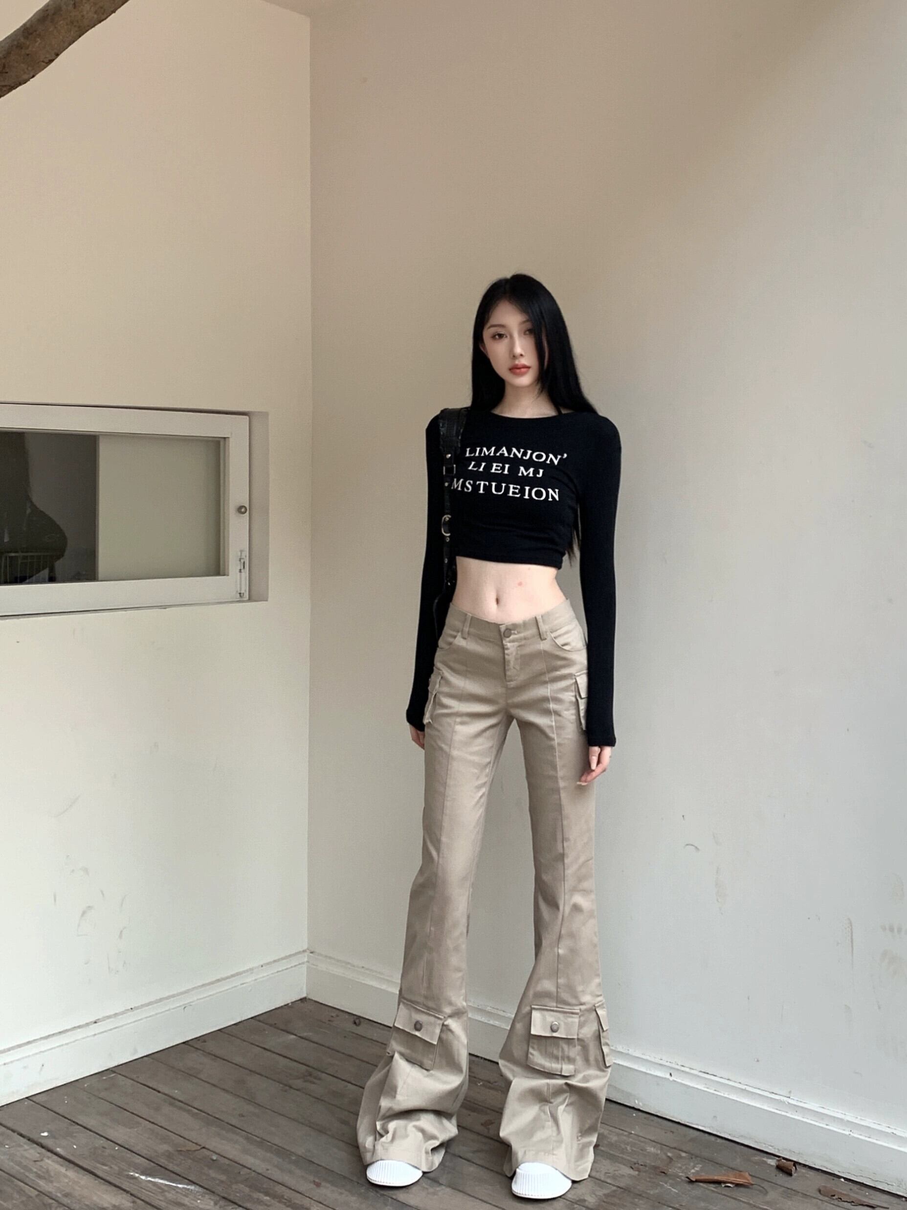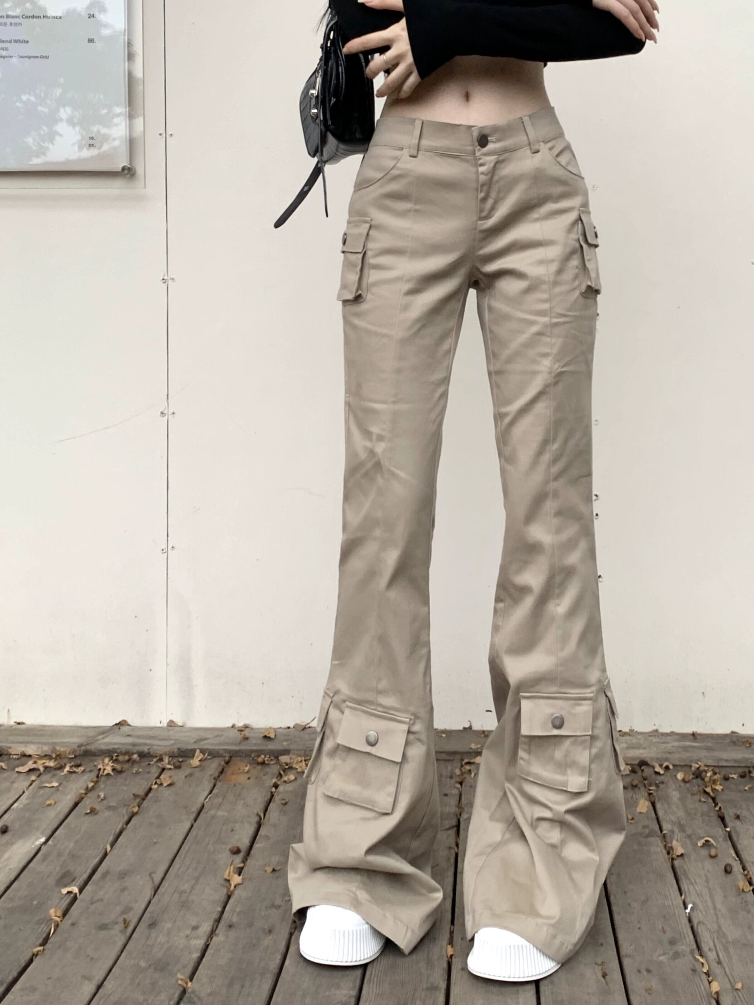 アメリカンマイクロフレアポケットオーバーオール女性秋スリムフィットストレートカジュアルホースシューフロアモップパンツ小人 レッド オータム 秋物 bstraw5272639003 | beaute25