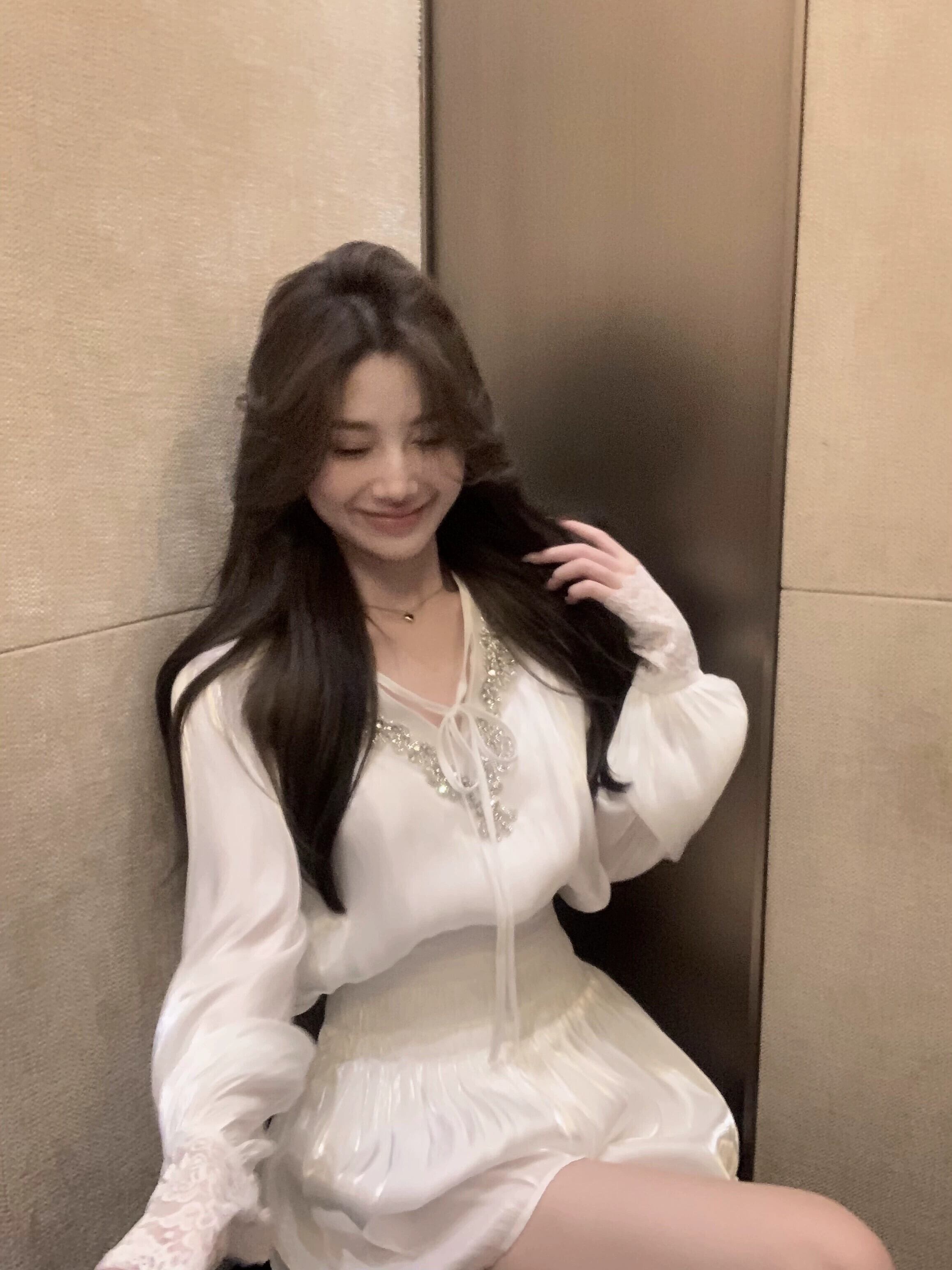 フレンチジェントルスーツ重工業ラインストーンVネック長袖シフォンシャツレディース秋ハイウエストスカート白2点セット ロング ホワイト オータム 秋物 bstraw81026457883 | beaute25