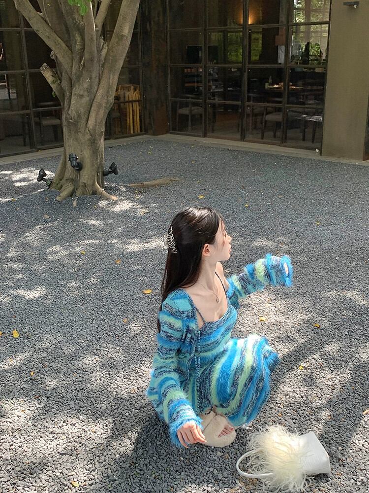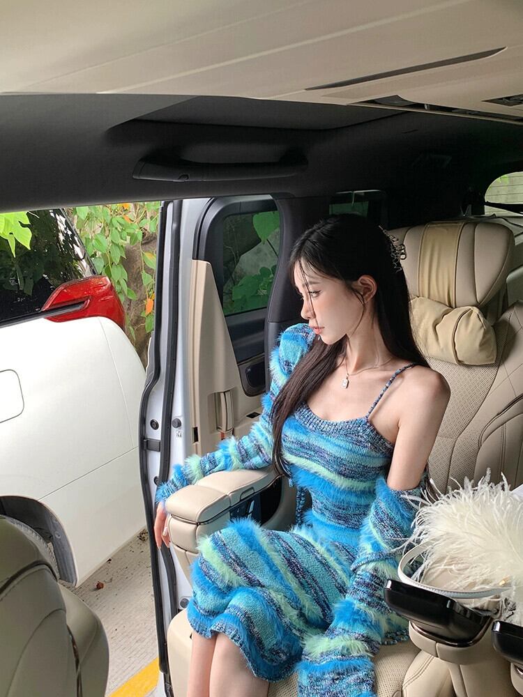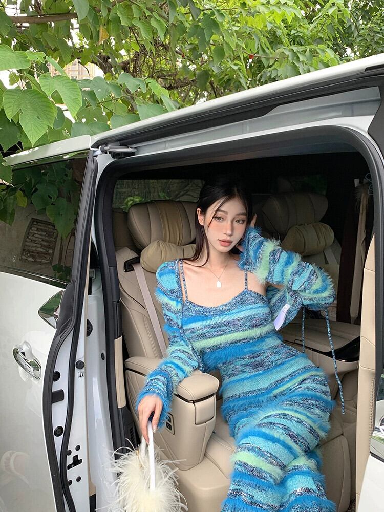 雰囲気スーツ ストライプ ショール ニット カーディガン レディース 秋 ウエストバッグ ヒップ サスペンダー ワンピース 2点セット オータム 秋物 bstraw11733705027 | beaute25