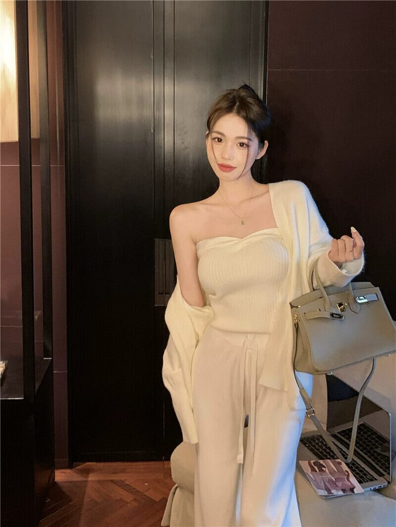 ジェントルスーツ チューブトップ ベスト 長袖 ニット カーディガン ジャケット トップ レディース 秋 カジュアル パンツ ホワイト 3点セット ロング オータム 秋物 bstraw83209242538 | beaute25