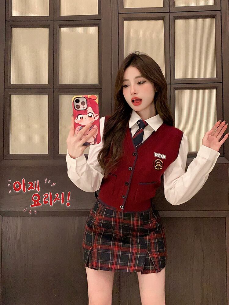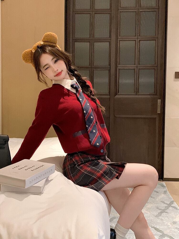 色:ベスト,カーディガン,スカート,ネクタイと白いシャツ