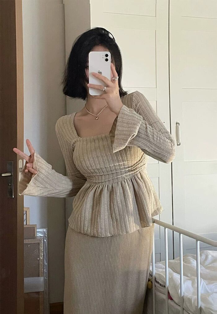 フレンチレトロスクエアネック長袖Tシャツ女性秋シックなスリムウエストショートスタイル優しい気質ボトリングシャツトップ ロング オータム 秋物 スクウェア bstraw51740313184 | beaute25