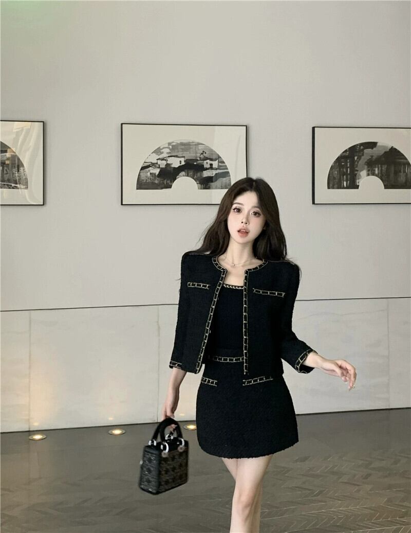 色:黒いジャケット,ブラックサスペンダー,黒スカート,白いコート,ホワイトサスペンダー,白いスカート