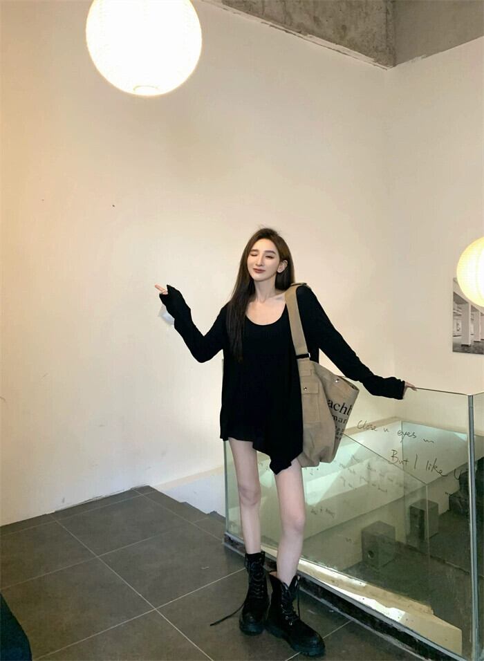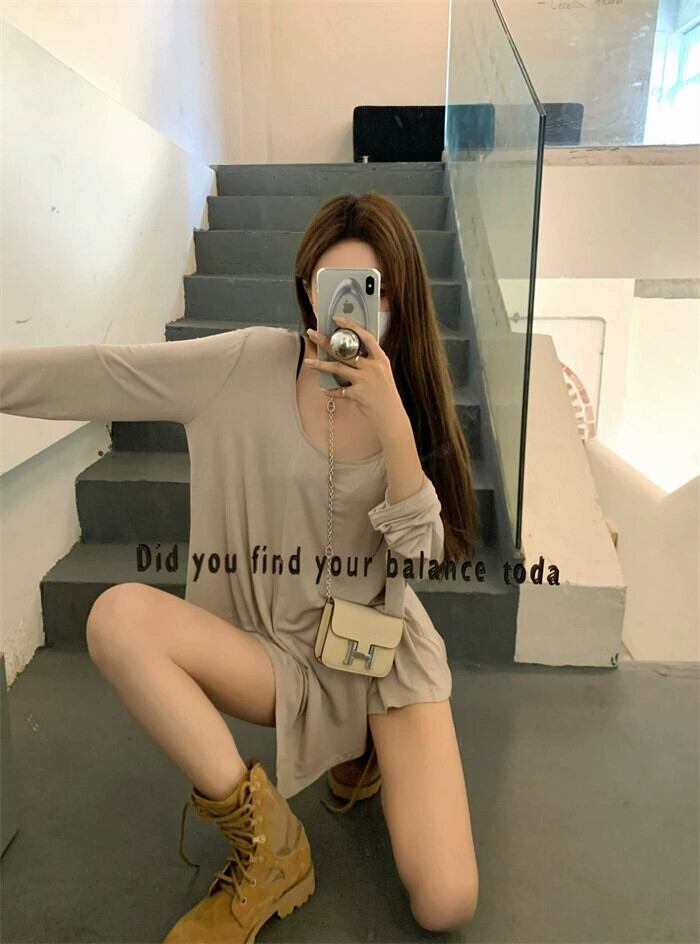 スタイル黒ローネック長袖 Tシャツ女性秋 2023 新しいスタイル不規則な怠惰なスタイルルーズミッドレングストップ ロング ブラック オータム 秋物 bstraw88687922714 | beaute25