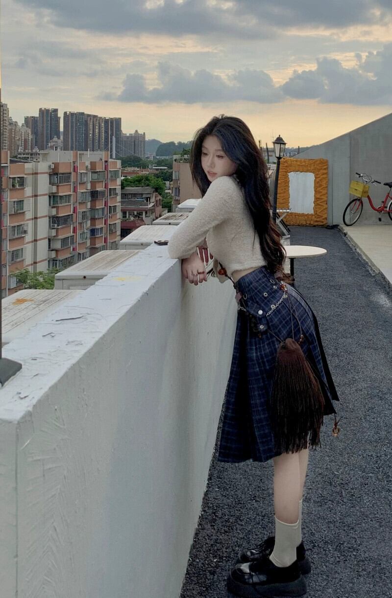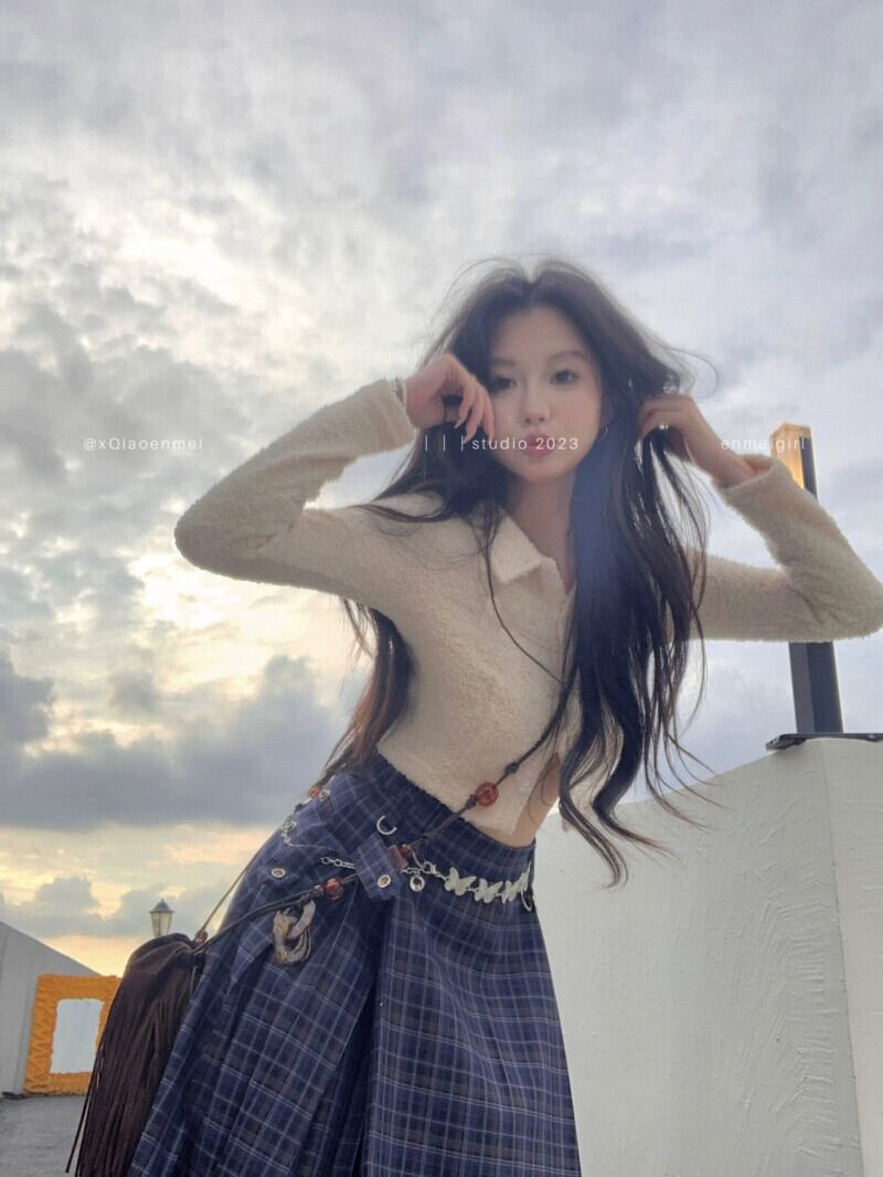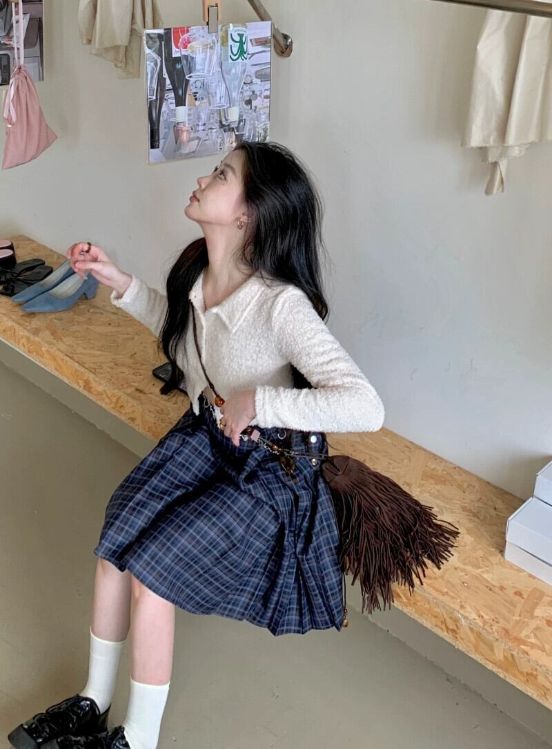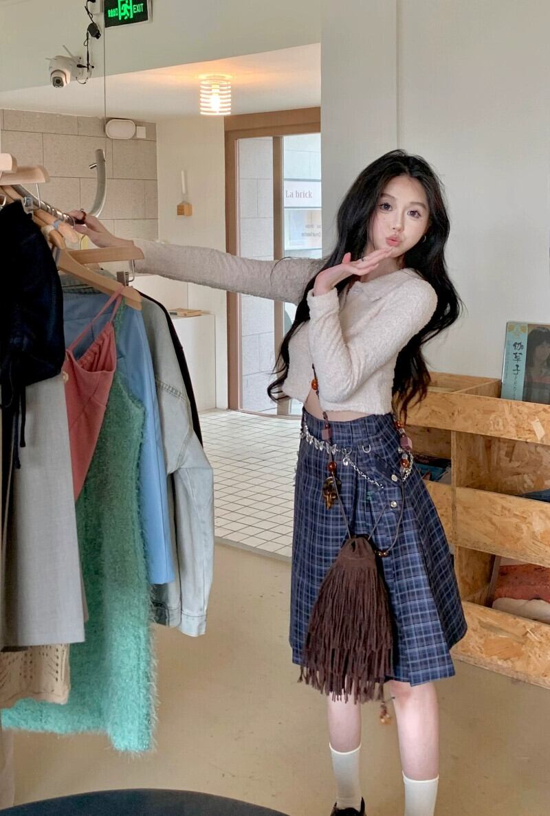 色:チェック柄スカート,クリームトップ,ウエストチェーン
