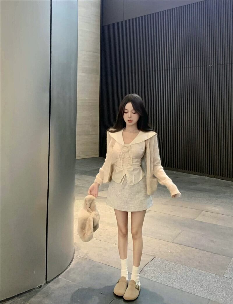 色:カーディガン,短いスカート,シャツ